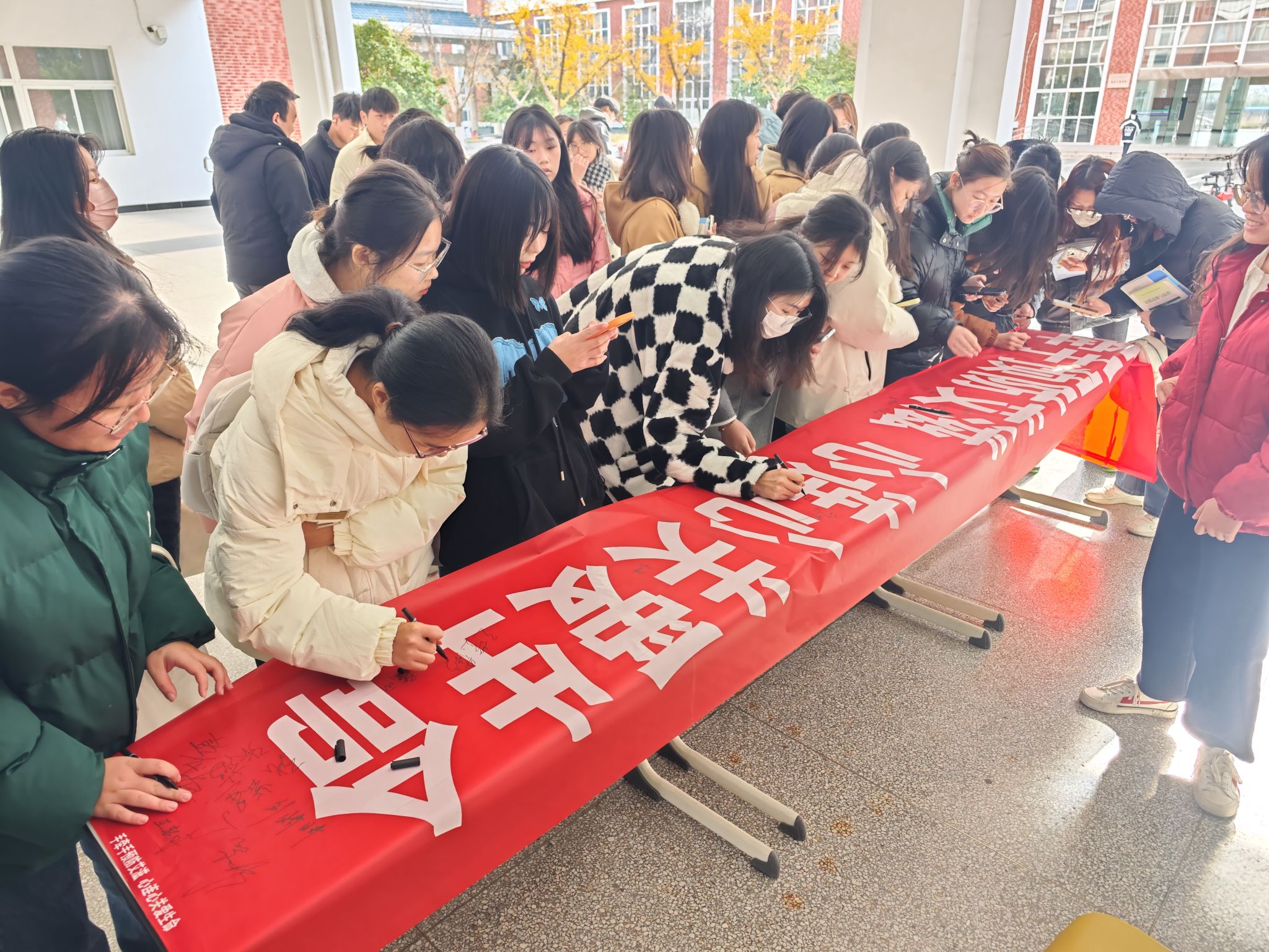 为增强同学们对艾滋病的认知和自我保护意识,管理学院团总支于2023年12月4日中午11点40在致真楼大厅举行“手牵手预防艾滋,心连心关爱生命”签字活动。管理学院同学们积极参与。