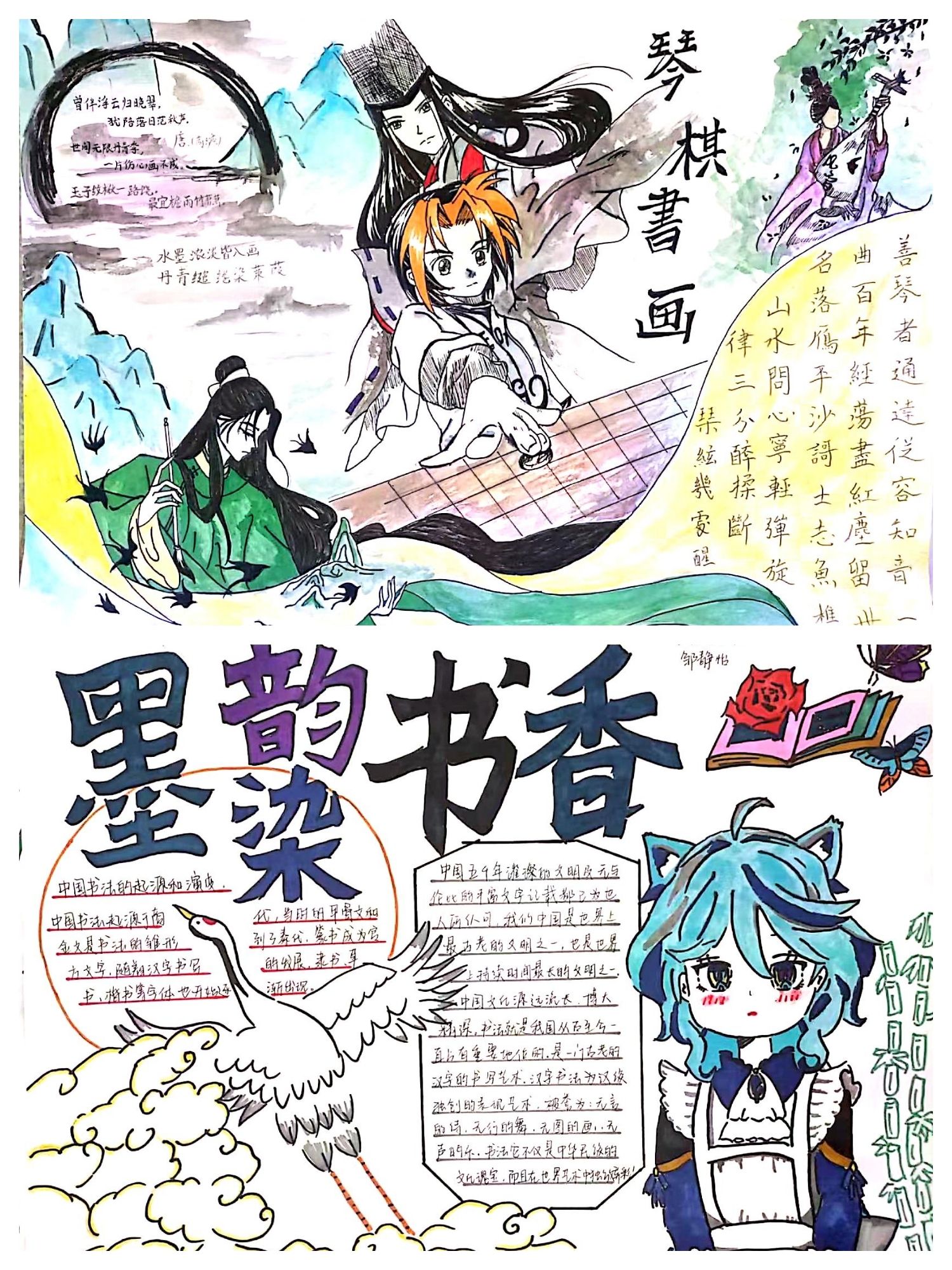 为丰富校园文化生活,营造浓厚的校园文化艺术氛围。管理学院学生会于2023年12月1日举办“笔尖下的中国文化之琴棋书画”手抄报比赛。