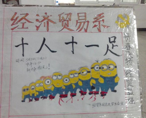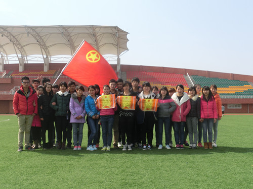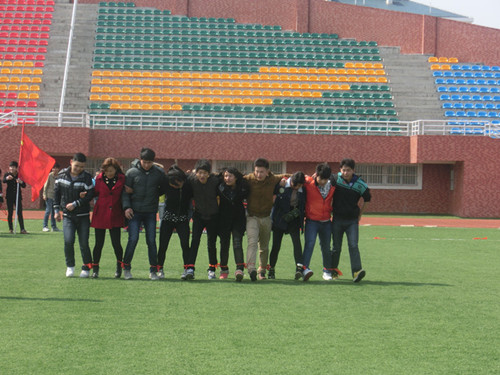 为了丰富同学们的校园文化生活,增强同学们的团结合作意识,2014年3月3日,经济贸易系团总支学生会在新操场开展第三届“十人十一足”趣味比赛。