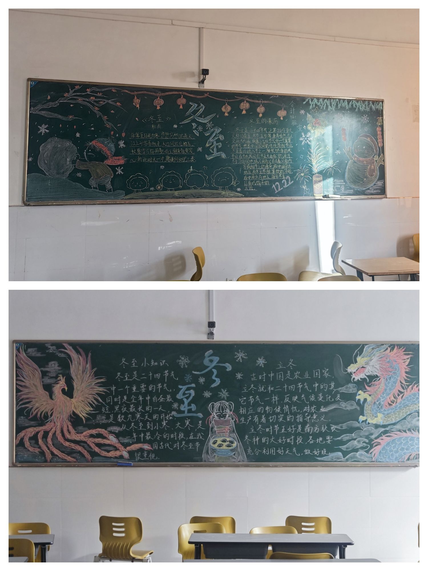 冬至是二十四节气之一,民间有“冬至大如年”的说法。为了让学生们感受传统节日氛围,弘扬中华优秀传统文化,丰富校园文化生活。2023年12月19日,管理学院学生会在致真楼举办“冬至”黑板报比赛。