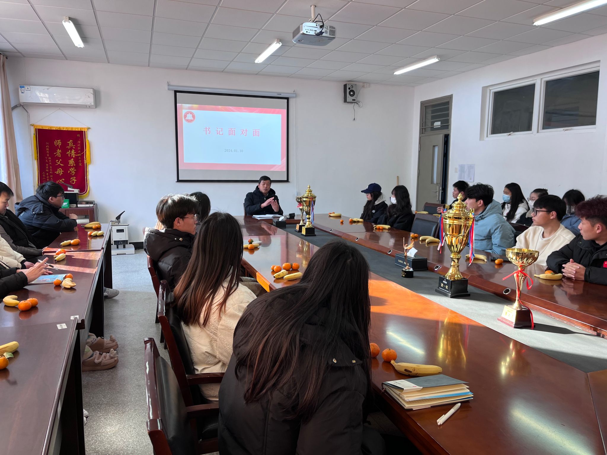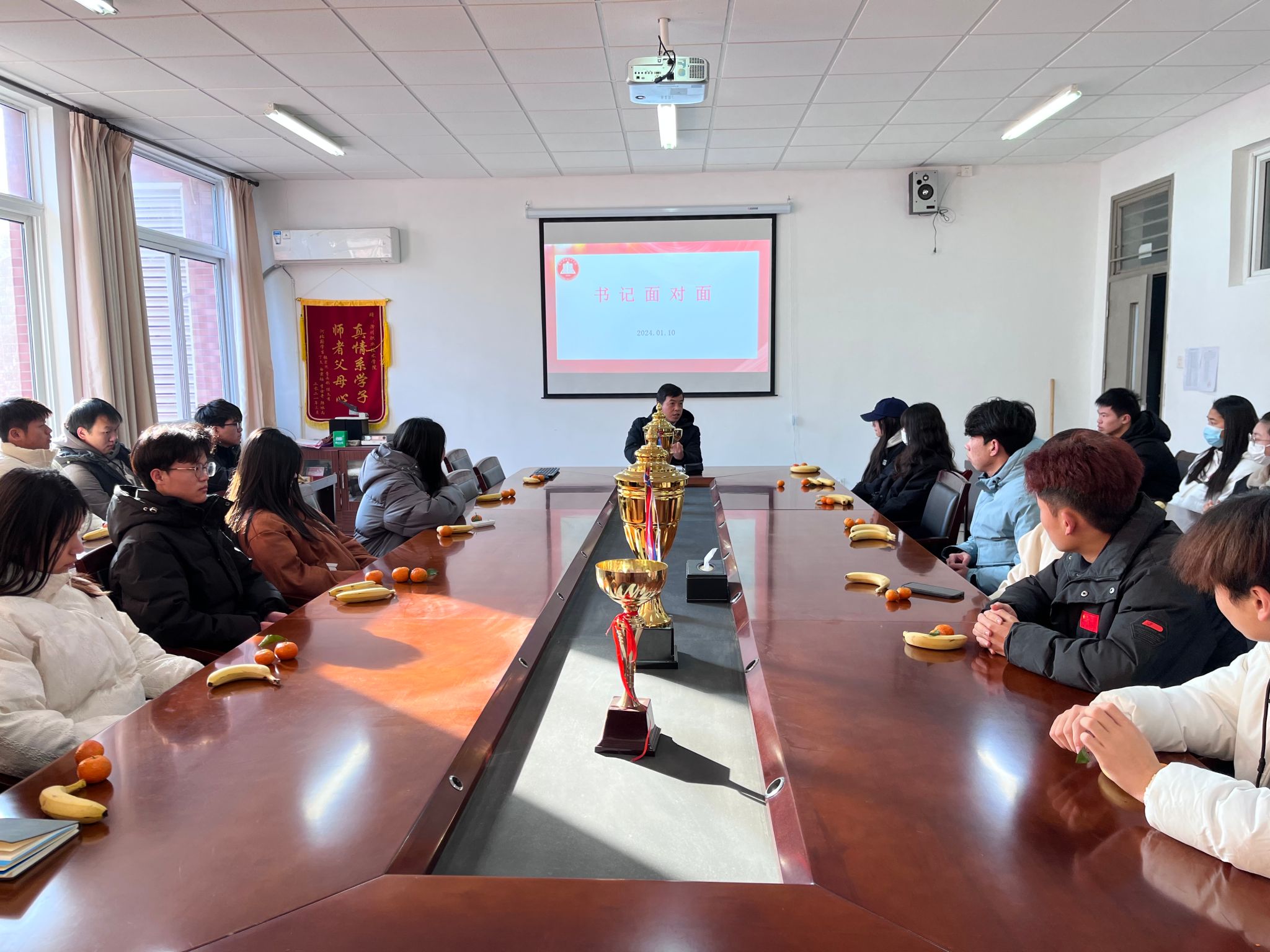 为更好地了解学生的需求,加强学校与学生之间的沟通与交流,管理学院于2024年1月10日下午3时在致真楼1405会议室开展“我与领导面对面”座谈会,院党总支书记耿学刚及学生代表参加。