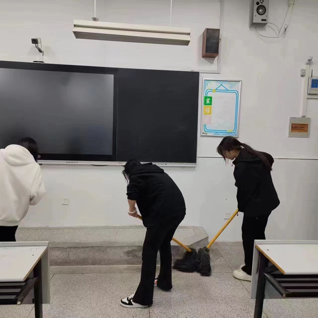 为了给即将到来的寒假营造一个干净、 整洁的环境。2024年1月12日,管理学院学生开展了一场卫生清扫实践活动。