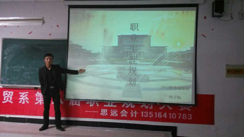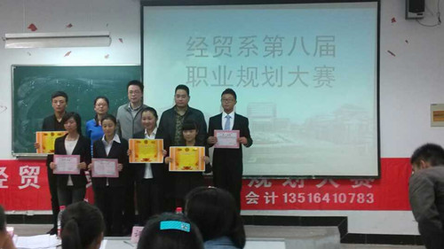 为激发广大同学的成才愿望,普及大学生职业规划知识,为今后职业发展打下良好基础,经济贸易系在2013年10月22日中午举行了第八届职业规划设计大赛。本次大赛由经贸系团总支书记何堃、职业发展规划课老师李晓辕和辅导员张浩担任评委。