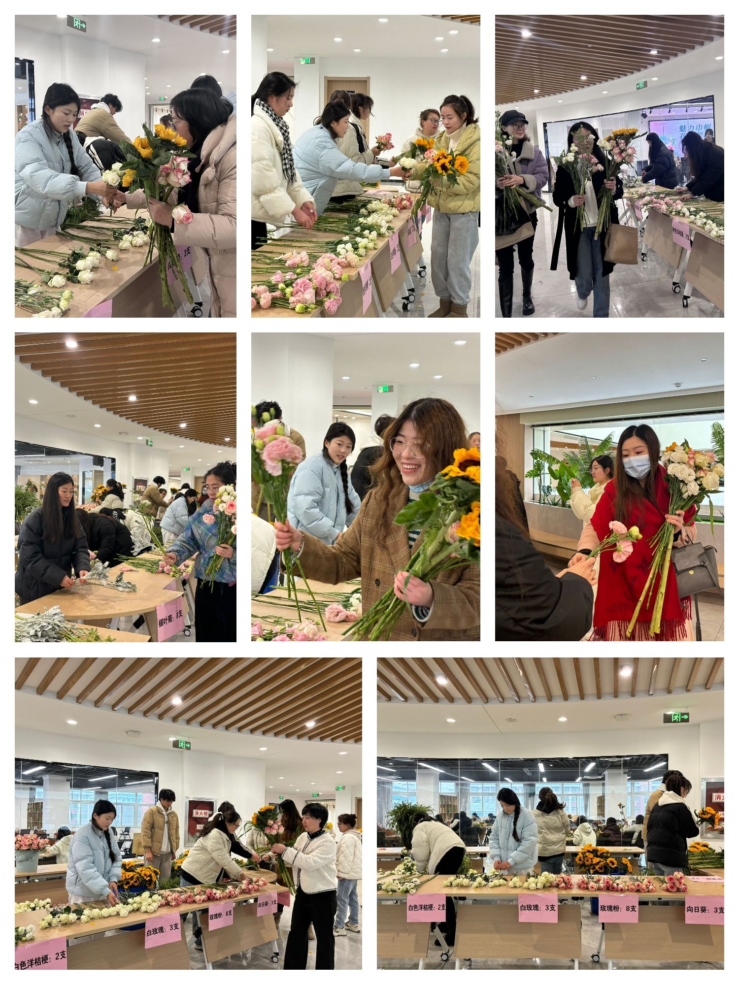 在活动开始前,志愿者们提前学习了醒花、修剪、插花的技巧。活动当天,志愿者们准备好鲜花等待老师的到来。女教师们领取鲜花后,在花艺师的指导下开启插花之旅。老师们热情高涨,积极参与,不断尝试,用自己的双手创造出美丽的花篮。活动最后,女教师们拿着亲手制作的花篮,志愿者们为她们送上节日的祝福。大家欢声笑语,合影留念,记录这美好的时刻。