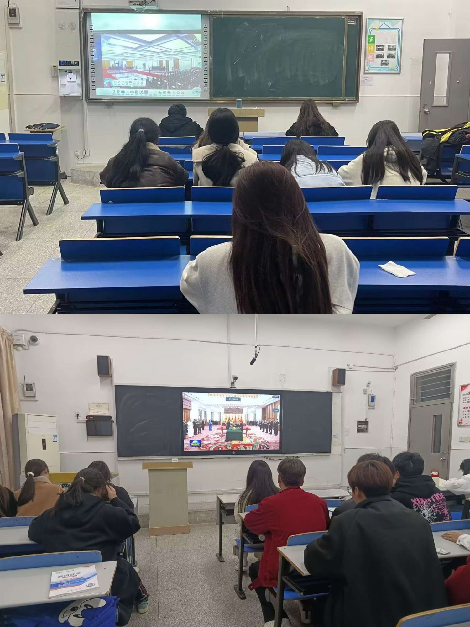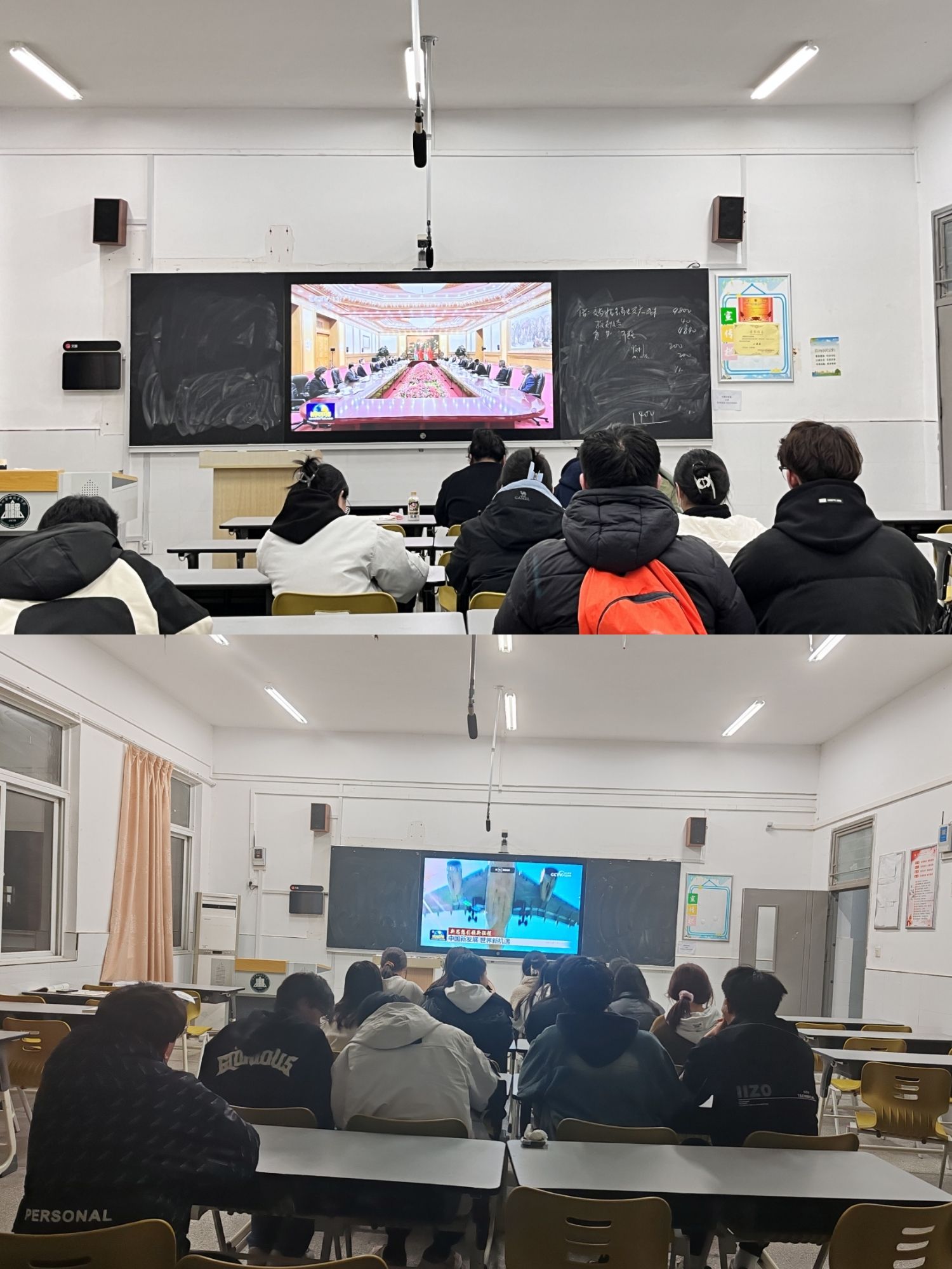 为营造积极向上的校园文化氛围,了解国际形势和发展趋势,关注民生热点,弘扬正能量,我院组织2023级学生每天晚自习在教室观看《新闻联播》。