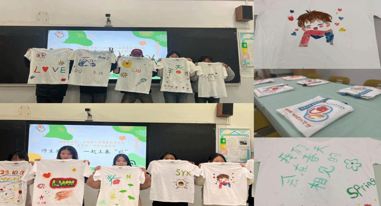 本次心理活动以“师生共涂鸦,一起上春衫(山)”为主题,组织辅导员兼心理辅导站老师和学生一起进行T恤涂鸦创作,旨在通过绘画创作释放压力,缓解春季潜在的焦虑情绪。同时,通过师生共绘的方式,加强和学生的交流互动,引导学生积极乐观面对生活中困难和不如意。