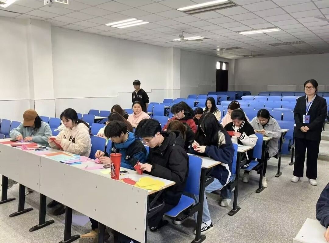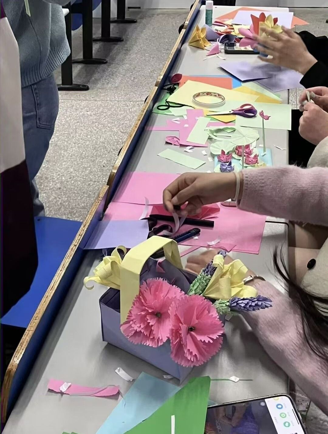 本次活动由纪检部工作人员在教室门口引导学生,学生就坐后发放彩纸和剪刀。活动过程中,同学们热情高涨,纷纷发挥自己的想象力,将一张张彩纸变成了一朵朵精美的花。现场气氛热烈,同学们互相交流、切磋技艺,欢声笑语不断。这次活动不仅让同学们放松了心情,还增强了对手工制作的兴趣和爱好。同时,也体现我院对学生综合素质培养的重视,为校园文化注入新的活力。