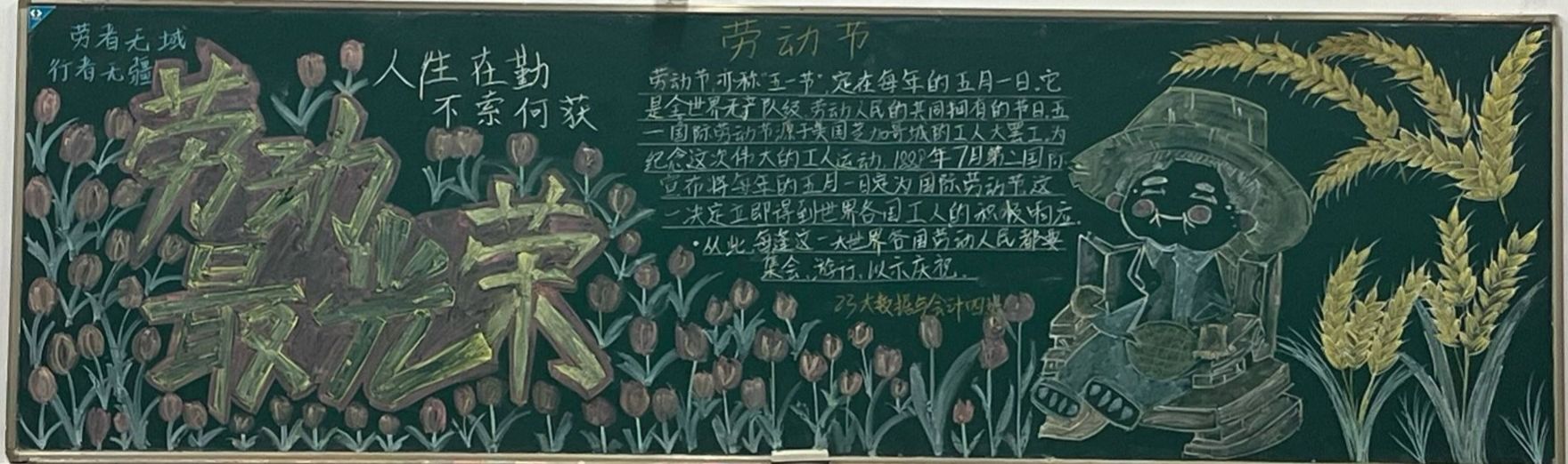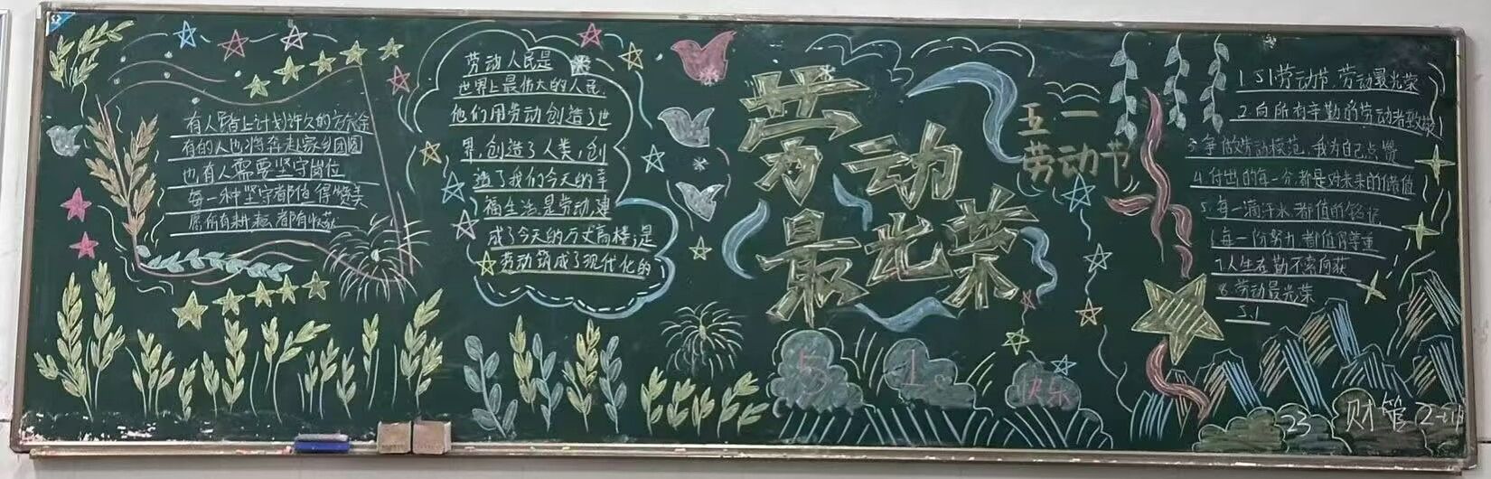 为弘扬劳动精神,培养同学们对劳动的热爱和尊重。2024年4月25日,管理学院学生会举办“花开五月天,劳动最光荣”主题黑板报比赛。