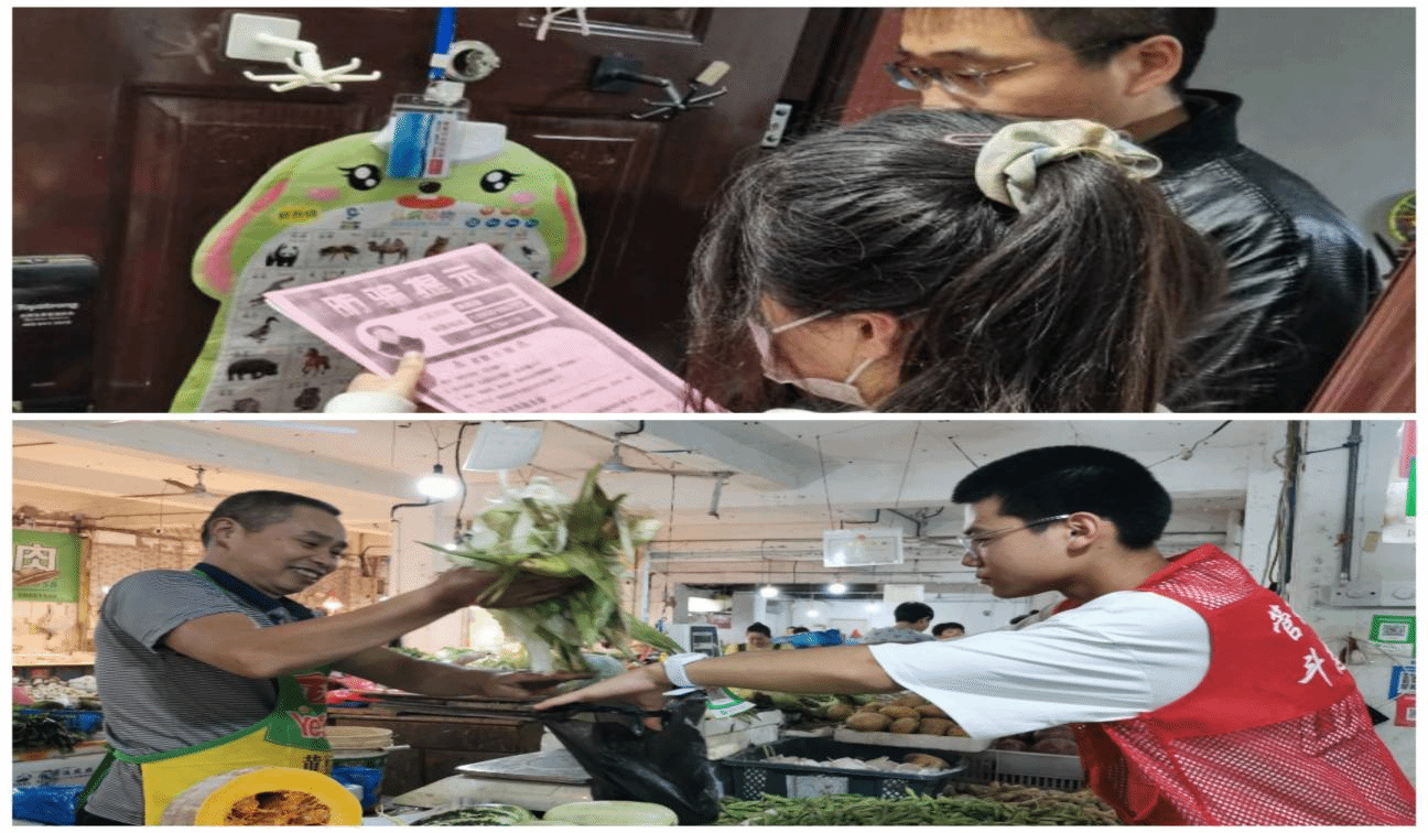 首先是“防诈宣传进社区”。活动当天,学生通过入户宣传的方式,向居民发放反诈宣传资料,讲解真实案例。辖区居民群众表示,宣传给大家起到了警示作用,自己也会守好“钱包”。 其次是“暖心服务进菜场”。人间烟火气,最抚凡人心。菜市场是民生一线,也是日常老百姓最常去的地方。活动当天,学生走进摊位,帮助摊主整理蔬菜、打包蔬菜,在助民过程中体验劳动、树立劳动最光荣的理念,培养劳动精神。