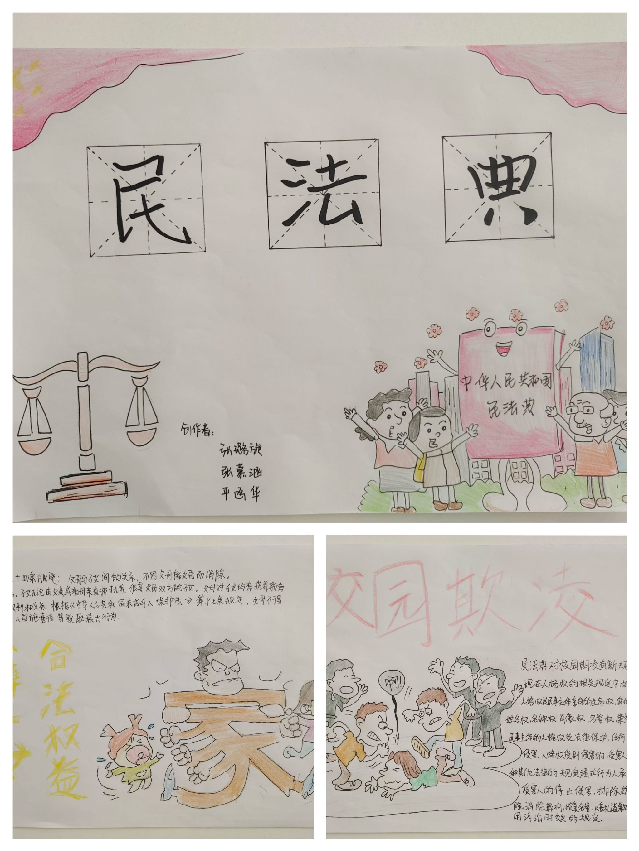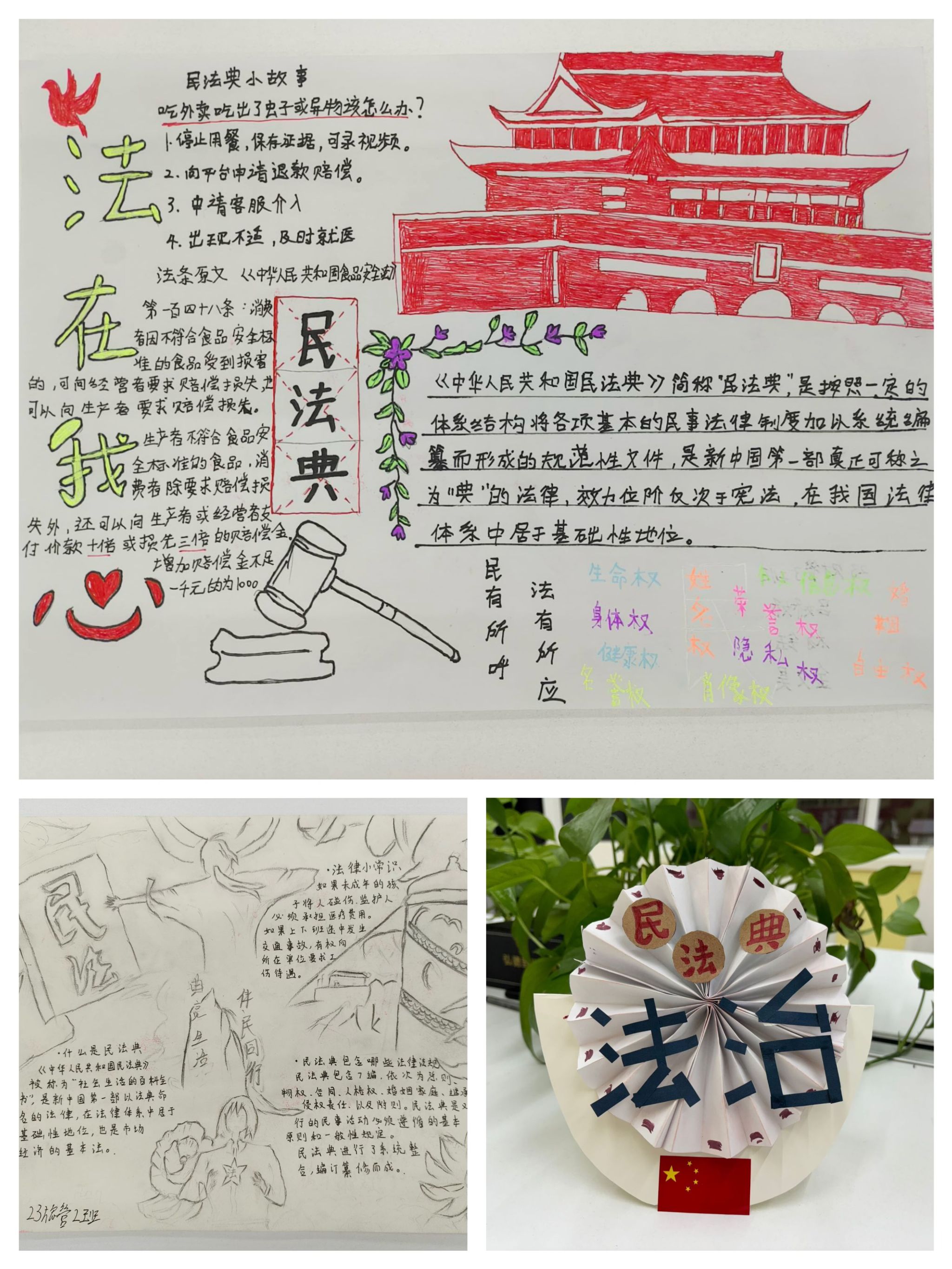 活动中,首先由团总支干事向学生们发放A4纸,同学们纷纷拿起画笔,用心绘制他们对民法典的理解与感悟。画作内容丰富多样,有的描绘了民法典保障公民权益的生动场景,有的展现了法治社会和谐稳定的美好画卷。每一幅作品都凝聚了同学们的智慧和心血,充分展示了他们对法治精神的追求和对美好生活的向往。最终经评比,23级大数据与会计四班张璐旋、张慕涵、平函华同学获得一等奖,23级旅游管理三班丁紫彤、刘晴晴,23级大数据与财务管理三班杨钰、金文昊、吕娇娇获得二等奖,23级大数据与会计二班阚冰冰、吴睿洁、23级旅游管理三班吴宛晴,邹静怡、赵喆获得三等奖。这些作品不仅体现了同学们对民法典的深刻理解,也展现了他们扎实的绘画功底和创新精神。