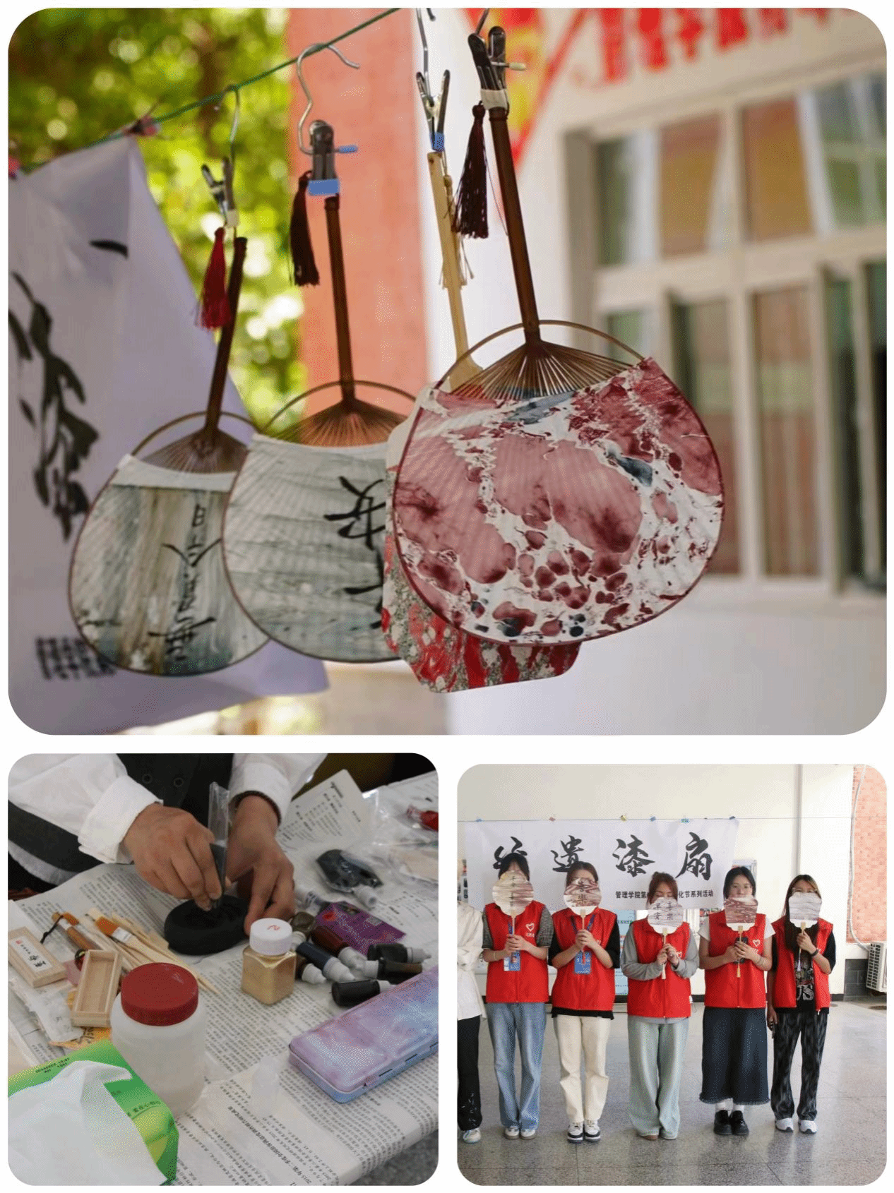 非遗漆扇体验活动为全院师生带来了一场独特的文化体验之旅。非遗传承人亲临现场,向同学们详细介绍了非遗漆扇的历史渊源、制作工艺和艺术特色。同学们怀着好奇与期待,认真聆听着每一个细节。随后大家纷纷亲手尝试制作,从精心绘制图案到细致地上漆,每一个步骤都充满了挑战与乐趣。同学们沉浸其中,用心感受着这一古老技艺的神奇与魅力。