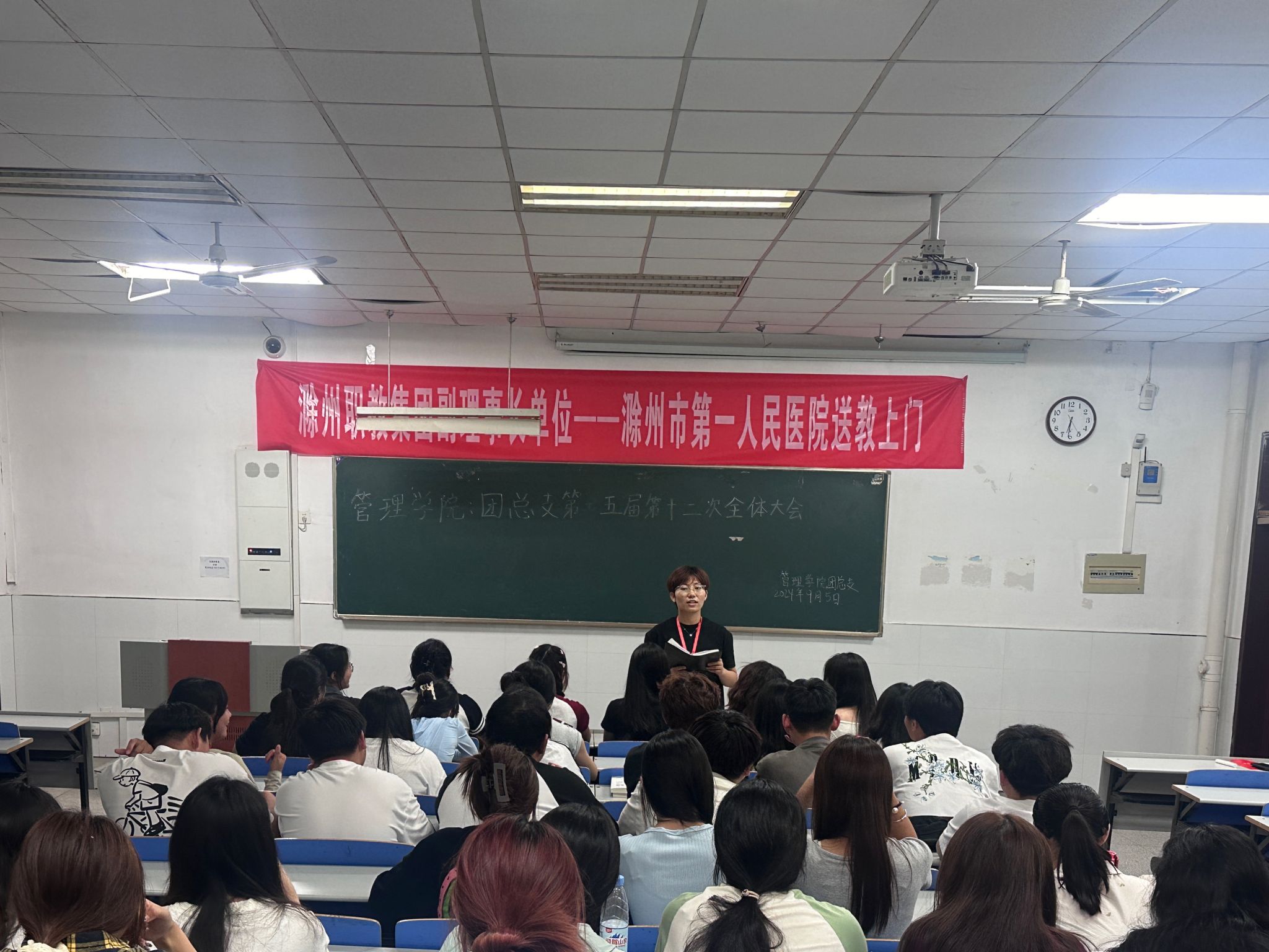 2024年9月5日下午六点半,管理学院团总支在1102教室开展第五届第十二次全体大会,本次大会由团总支副书记王婷主持,团总支全体成员参加。