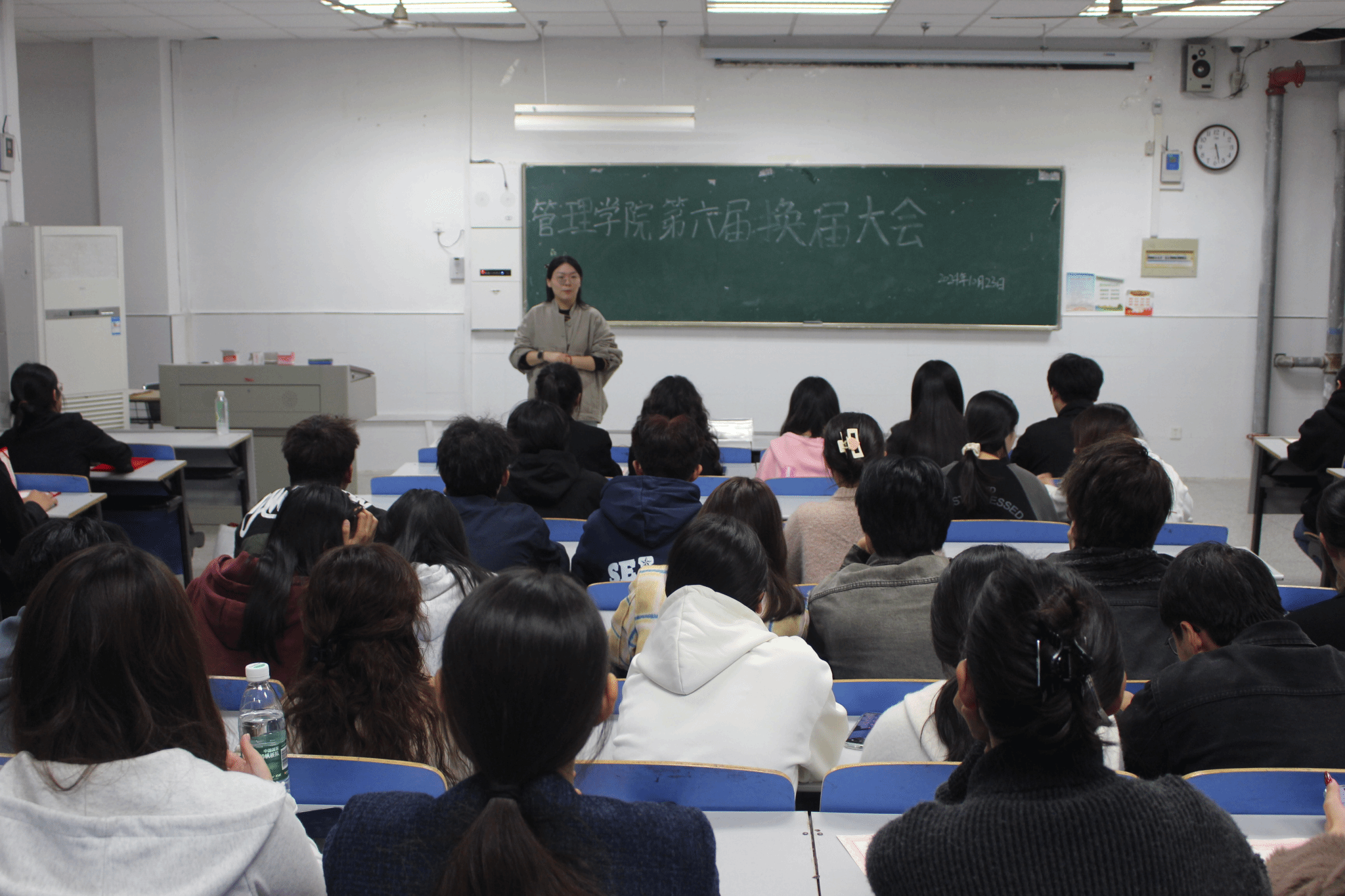 2024年10月23日,管理学院在致真楼1102教室举行了学生会换届大会。