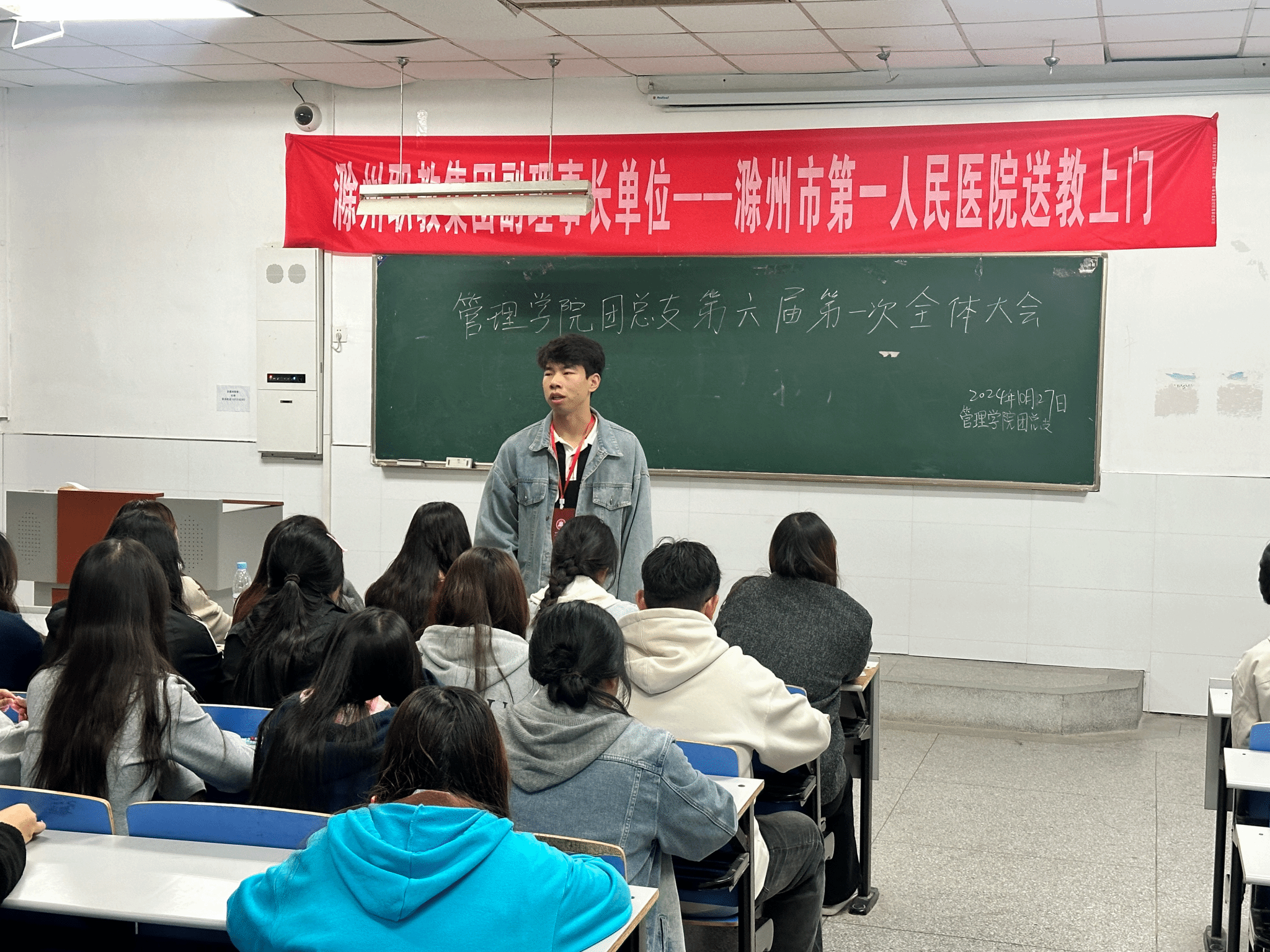 2024年10月27日下午六点,管理学院团总支在1102教室开展第六届第一次全体大会,本次大会由团总支副书记王英豪主持,团总支全体成员参加。
