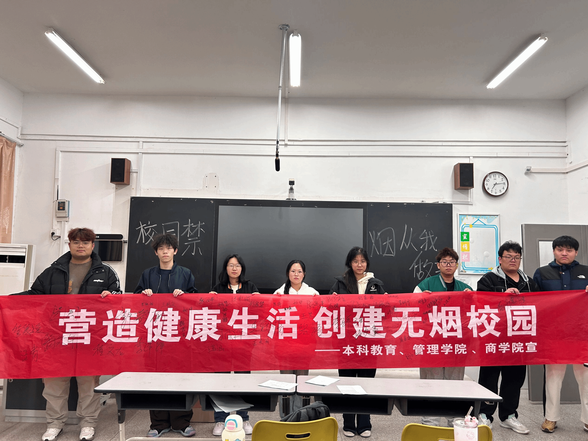 通过管理学院、本科教育和商学院的联合行动,校园内禁烟氛围愈发浓厚,为创建无烟校园打下了坚实的基础,让健康生活的理念在校园中深入人心。