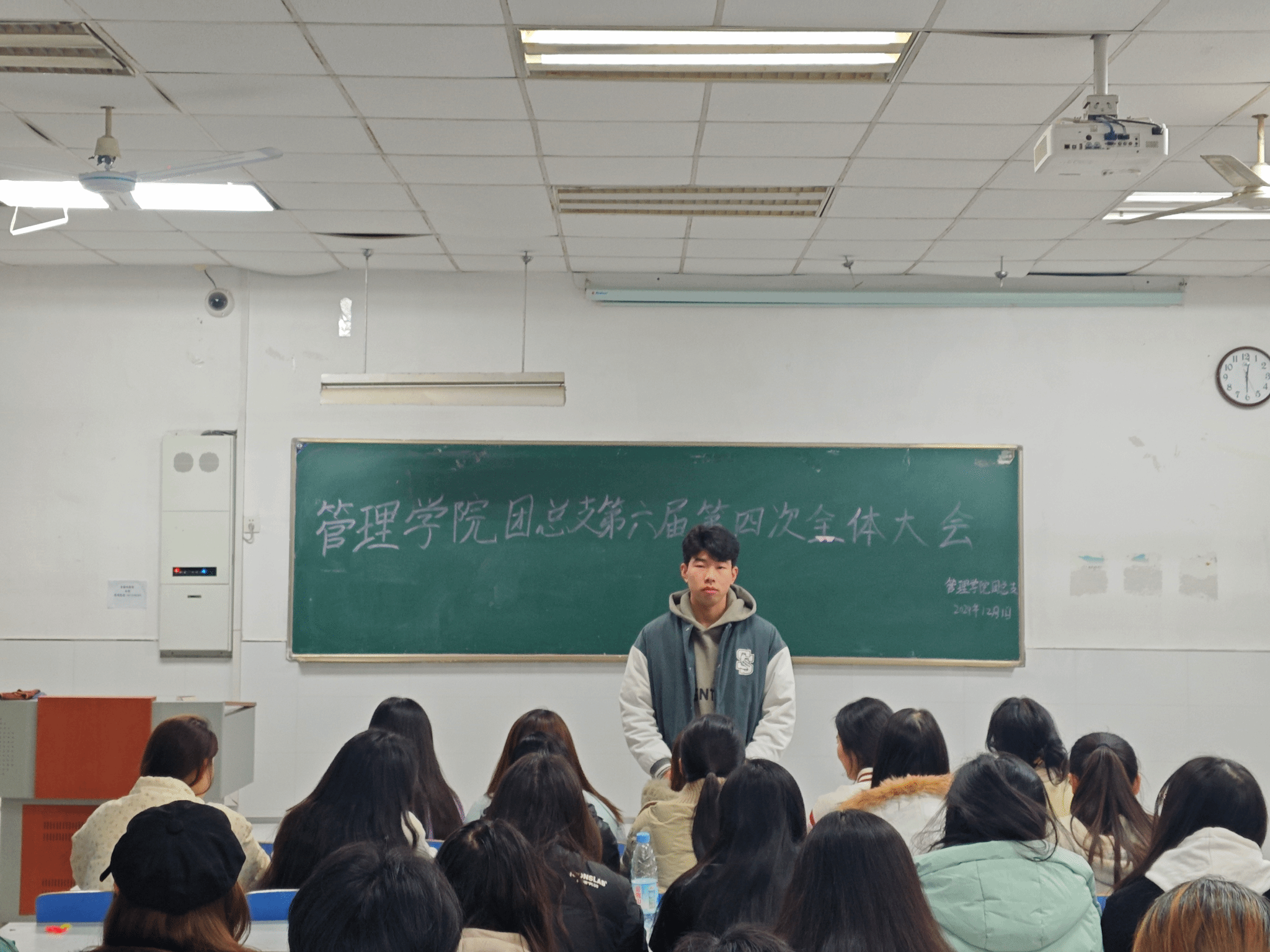 为加强组织管理,完善组织内部建设,2024年12月1日下午6点,管理学院团总支在1102教室召开第六届第四次全体大会。本次大会由团总支副书记王英豪主持,团总支全体成员参加。