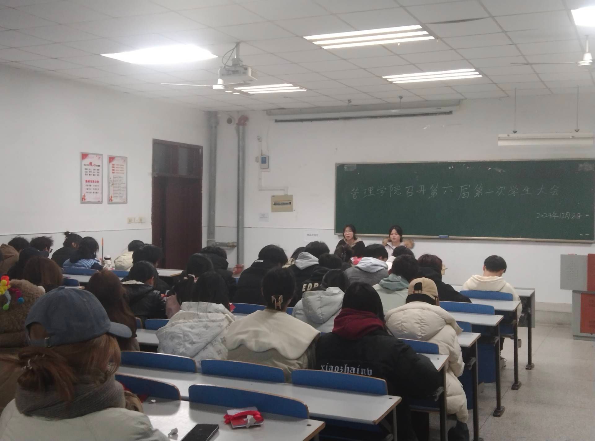 2024年12月8日,管理学院学生会在致真楼1101教室召开第六届第二次学生大会。