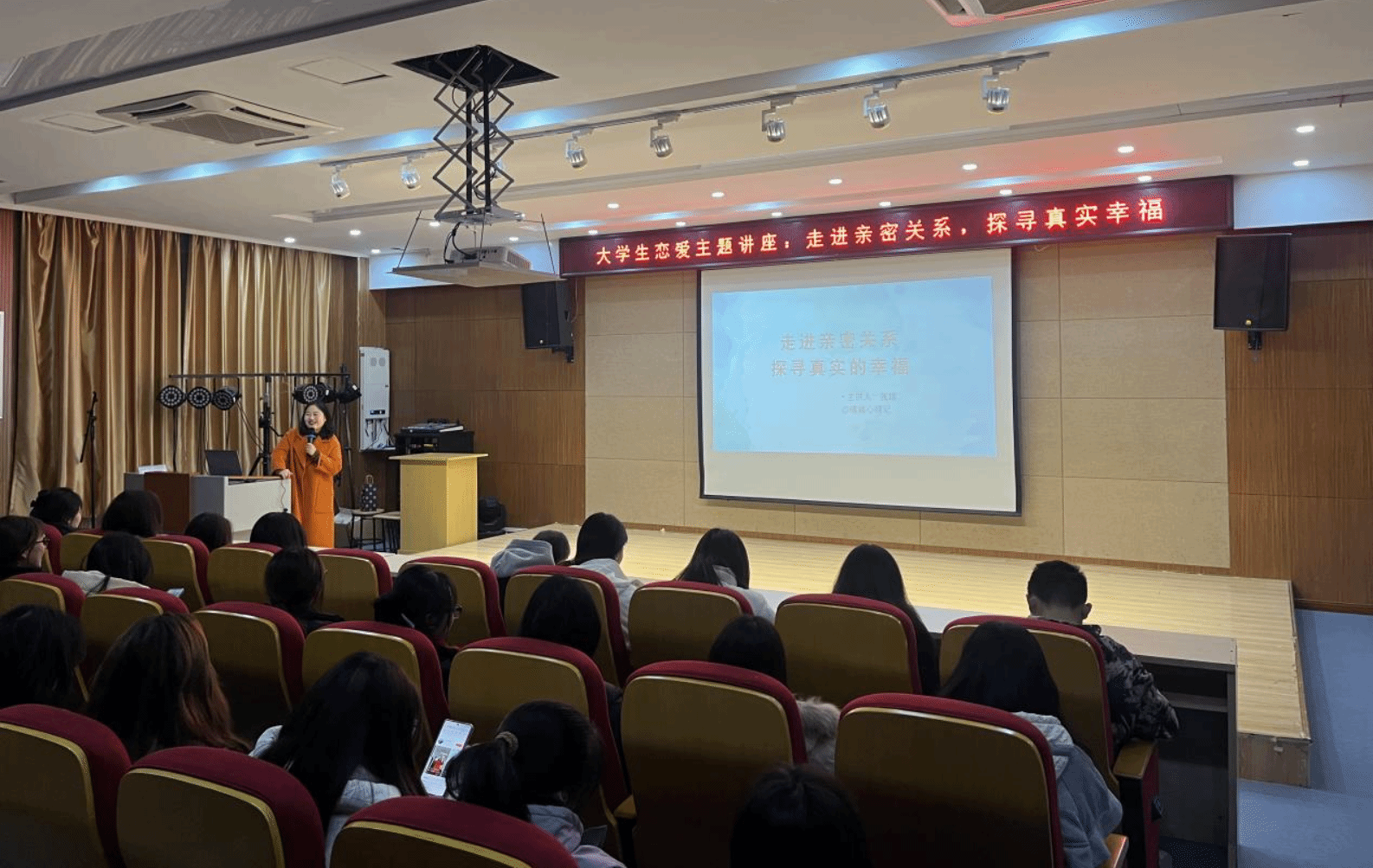 本次讲座进一步拓展了心理健康教育工作覆盖面,提升心理健康教育工作内涵。通过大学生恋爱主题讲座,切实引导广大学子树立正确的恋爱观,让恋爱成为一种积极的活动,在爱情中遇见更好自己!
