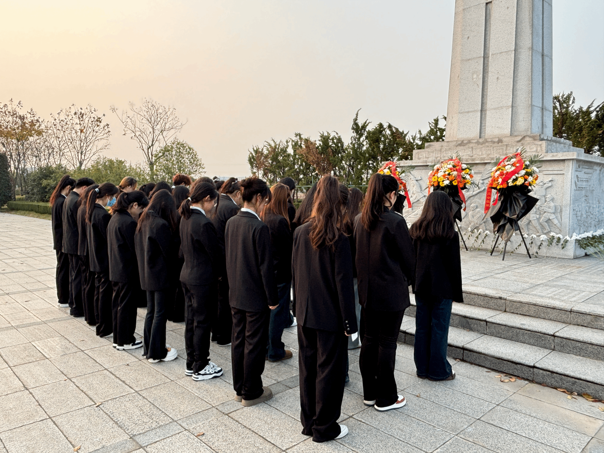 活动当天,同学们迈着沉重的步伐走向镜园的公祭广场,进行庄重的纪念仪式。现场庄严肃穆,气氛凝重。随着一声低沉的指令,全体人员静默肃立,向南京大屠杀遇难同胞及所有在日本侵华战争中蒙难的同胞默哀一分钟。在这短暂而漫长的六十秒里,历史的画面如潮水般涌来:南京城的残垣断壁、同胞们绝望的呼喊、日军的残暴罪行,每一幕都刺痛着在场每个人的心,悲痛与愤怒在空气中弥漫。
