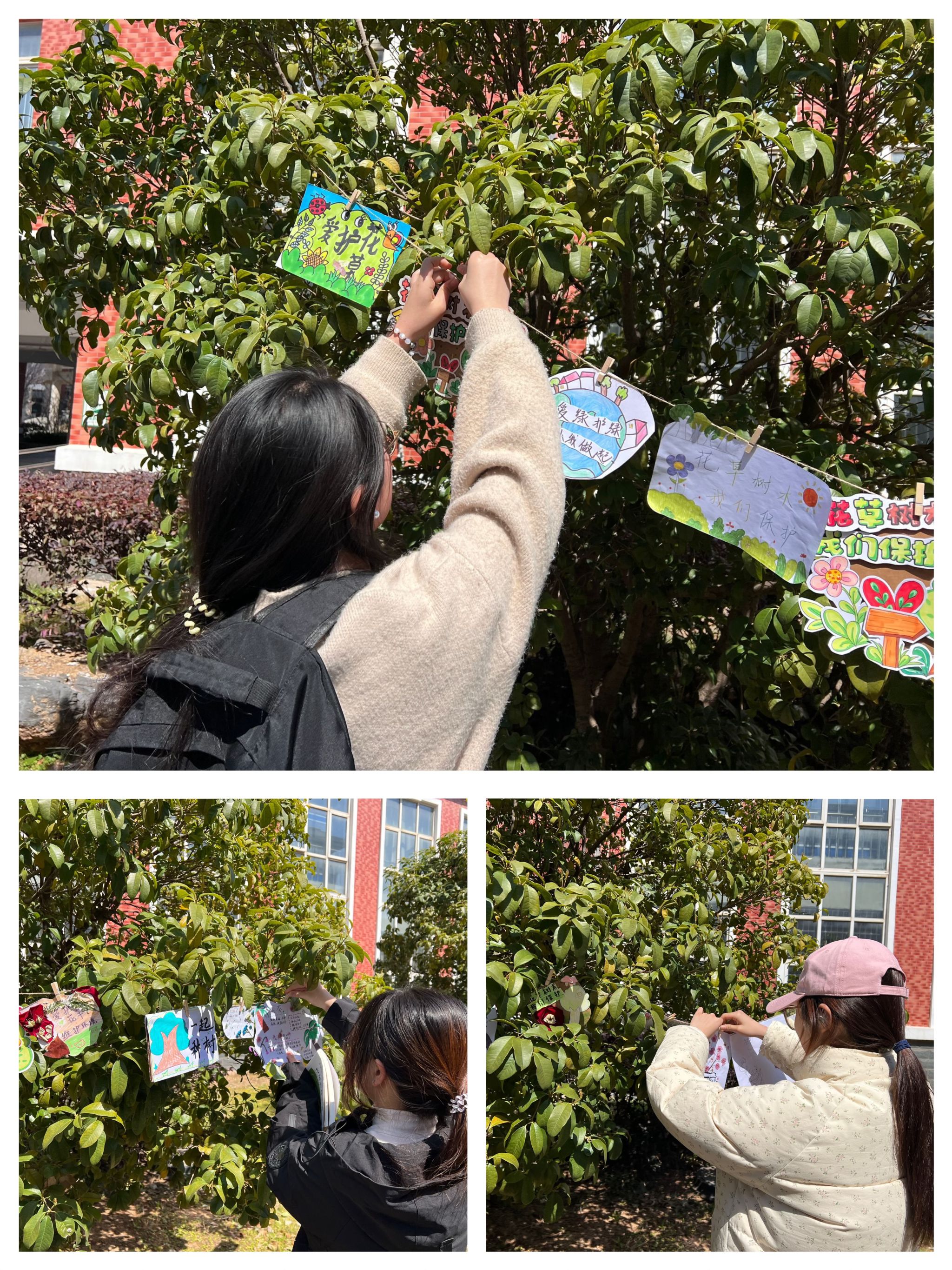 活动期间,同学们纷纷投身于收集绿色植物标本等材料的工作中,充分发挥想象力与动手能力,制作树牌、植物标本画和书签。每一个树牌都被精心设计,不仅色彩鲜艳、造型独特,还附上同学们真诚地环保寄语,承载着对树木的呵护与对绿色未来的期盼;一幅幅植物标本画更是将自然之美与艺术创意完美融合,生动展现了同学们眼中的绿色世界。大家在享受春日美好的同时,深刻体会到绿色环保对生态环境的重要意义。