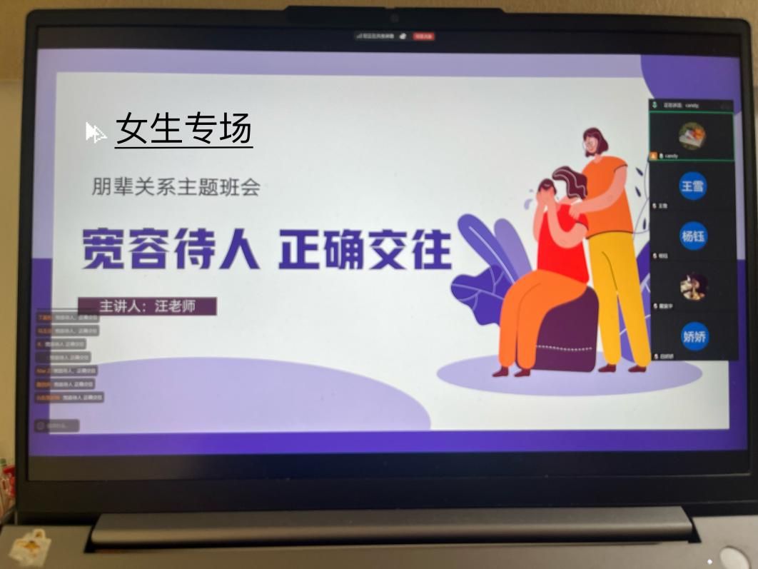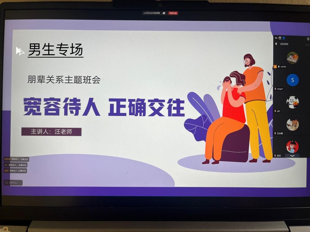 针对同伴性教育主题,辅导员以尊重、安全、责任为关键词,从防范性侵害、社交边界厘清、生理健康认知等方面展开系统讲解。通过理论阐释与互动问答,明确性侵害的法律界定与预防要点,倡导健康文明的人际交往观念,同时引导学生通过权威渠道学习性与生殖健康知识,消除认知误区,提升自我保护能力。