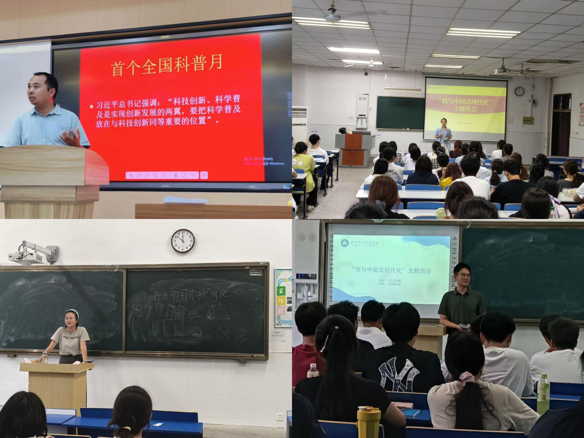 班会中,各班级辅导员通过趣味互动,自我介绍关键词等环节拉近与新生的距离,让同学们彼此之间也迅速熟悉起来。随后,辅导员们以“中国式现代化”为核心主题,向同学们讲解中国式现代化的深刻内涵,带领同学们学习习近平总书记关于科技创新、科学普及和科学素质建设的重要论述,引导同学们思考自身专业及发展方向与中国式现代化的关联,在学习要求、安全教育、班级管理、心理健康等方面深入讲解,同时要求同学们严格遵守各项规章制度,与老师、同学和睦相处,保持身心健康,尽快适应身份的转变,以新时代优秀大学生的标准要求自己,做好学业规划,将个人理想追求融入党和国家事业之中,努力实现德智体美劳全面发展。