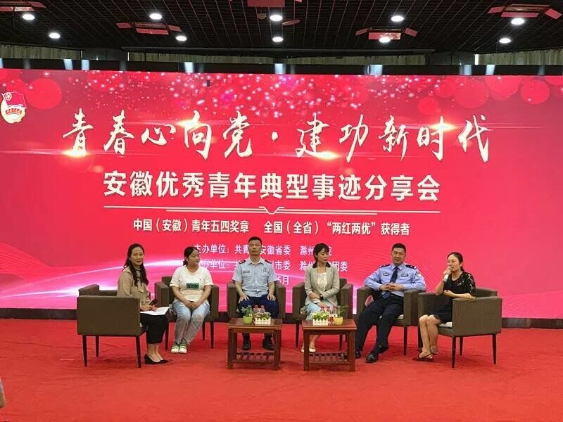 本次活动邀请了五位来自全省各地的团十八大代表、全国“两红两优”获得者、安徽青年五四奖章获得者做活动嘉宾。定远县吴圩镇西孔村党总支第一书记,十三届全国人大代表、团十八大代表、第21届安徽青年五四奖章获得者王萌萌;宿州市公安局交警支队一大队八中队负责人,第21届安徽青年五四奖章获得者赵猛;安徽师范大学2018级旅游管理专业研究生、安徽师范大学团委副书记、全国第十九届研究生支教团成员,2017年度全国优秀共青团员王阳;滁州市消防救援支队一级消防长,代表第22届安徽青年五四奖章(集体)潘五好;滁州学院外国语学院2015级商务英语专业学生,2019届安徽省品学兼优毕业生,2018年度安徽省向上向善好青年获得者戴雨晴。