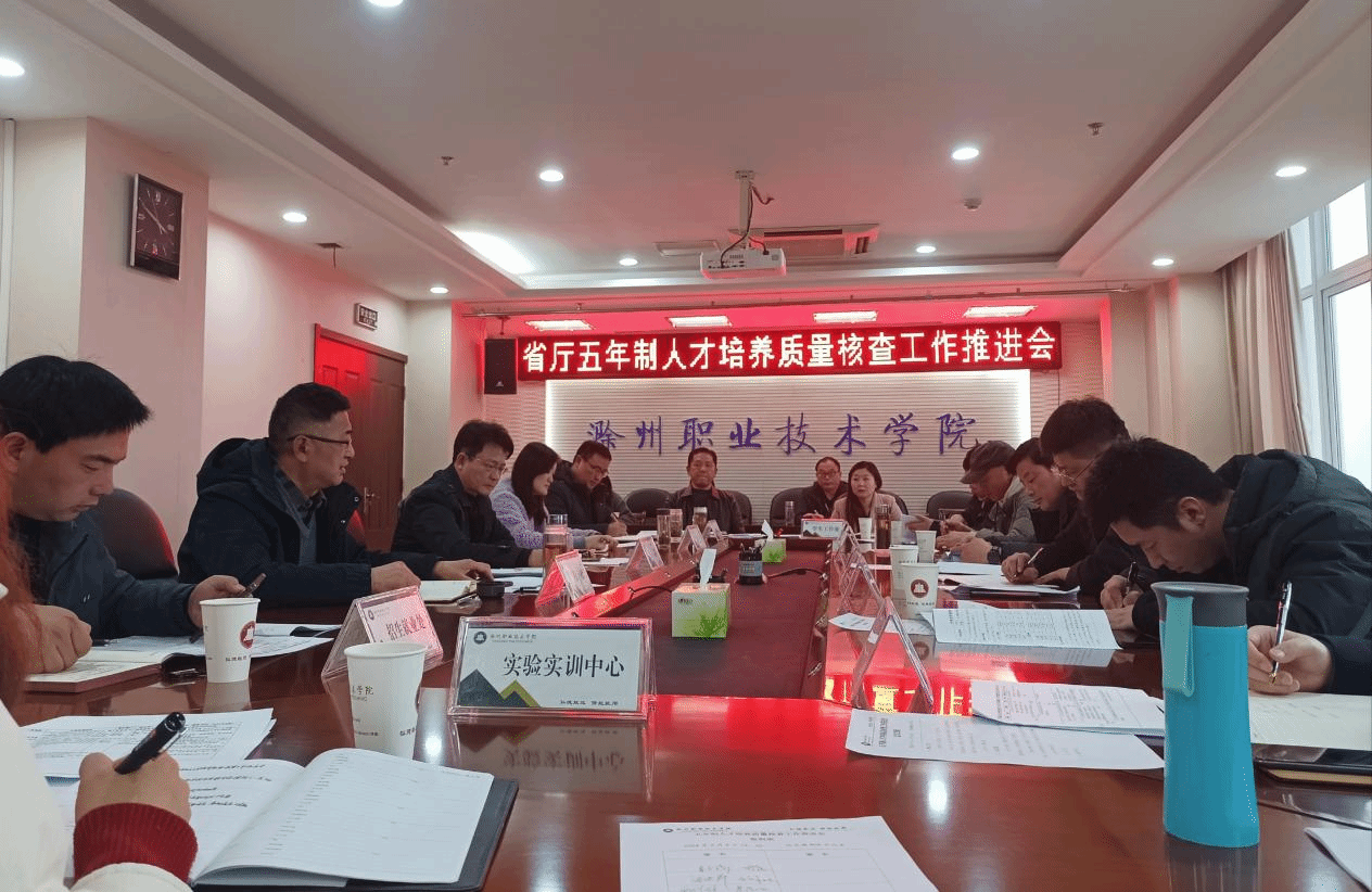 为迎接安徽省教育厅关于开展初中起点五年制高职教育人才培养质量核查工作,3月4日下午,学校在综合楼804会议室召开五年制高职教育人才培养质量核查工作推进会议,校党委委员、副校长苏有良,校党委委员、组织人事处处长王宇,校长助理、招生就业处处长穆松,各合作中职学校负责同志,各二级学院院长,教务处,学生工作处,招生就业处,组织人事处,质量管理中心,实验实训中心负责人参加此次会议。会议由教务处处长唐义武主持。