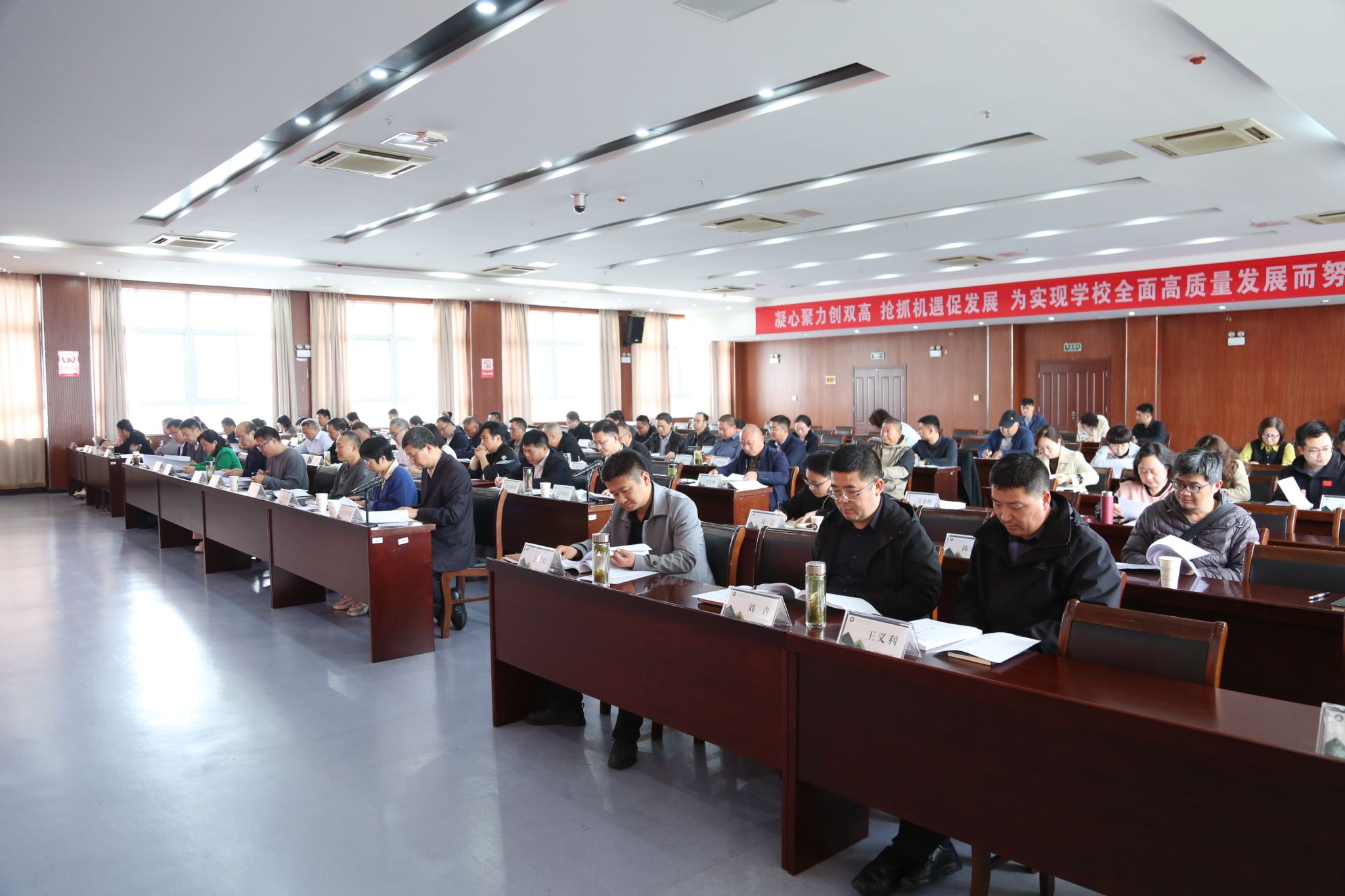 2024年4月13日,学校召开全校一季度“双高校”建设工作调度会。校党委书记曹付忠主持会议并讲话。党委副书记、校长许雪峰,党委副书记杨家庆,校领导江洁、孙静、苏有良、胡凼、李平权、王冬、王宇,各教学院部和各部门正副职出席会议。
