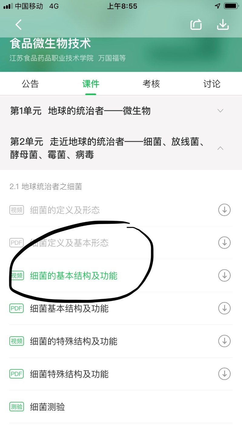 《食品微生物基础》课程,在前期教学过程中,该课程完成了学习通线上教学资料的建立,包括教案、PPT、电子图书,并在中国大学慕课选择了江苏药品职业技术学院录制的精品课程《食品微生物技术》作为学习资料。我没有用ppt录频或者用其他设备录制自己讲课的视频,能找到合适的精品课程就很好。