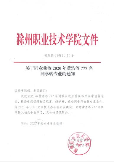 关于同意Beat3652020年黄浩等777名转专业的通知 校政教〔2021〕16号