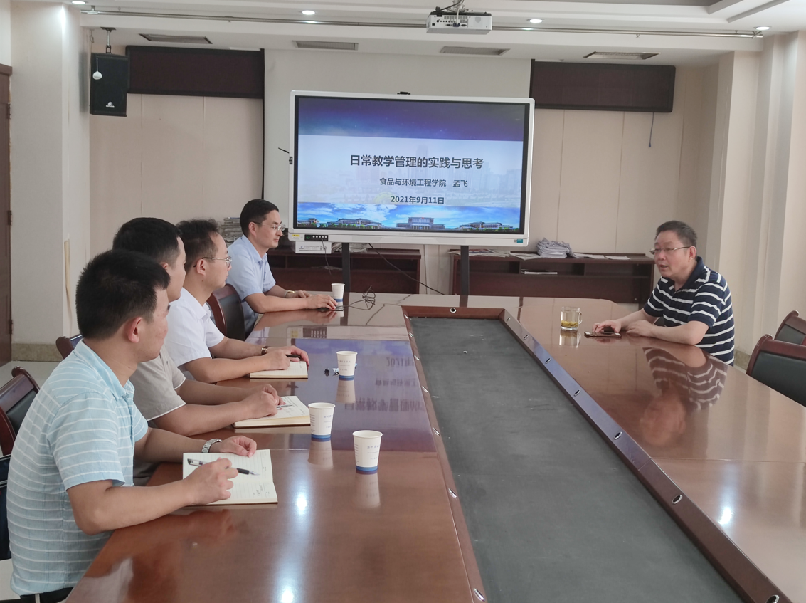 培训会邀请食品与环境工程学院副院长孟飞就日常教学的相关制度、现阶段管理工作的不足以及下一步思路三个方面进行了讲解与分析,并与会人员进行了相关教学经验与方法的分享。