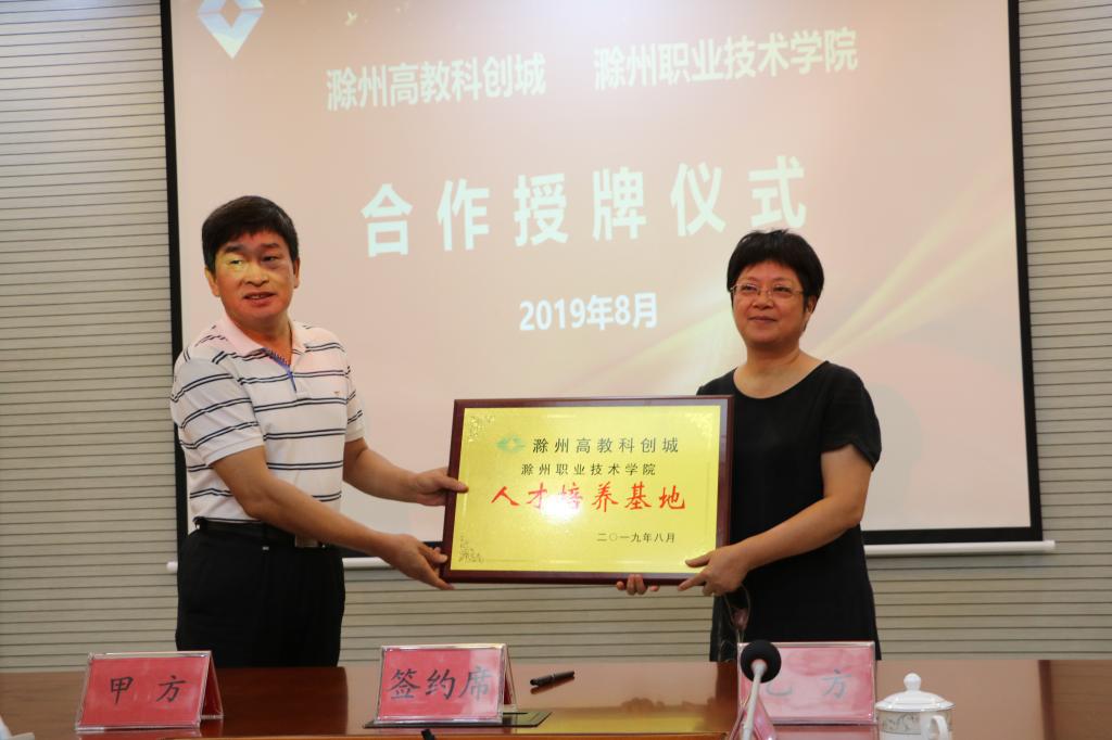 双方进行了授牌仪式活动,Beat365唯一官方网站授予滁州高教科创城“创新创业实践教育基地”,滁州高教科创城授予Beat365唯一官方网站“人才培养基地”。