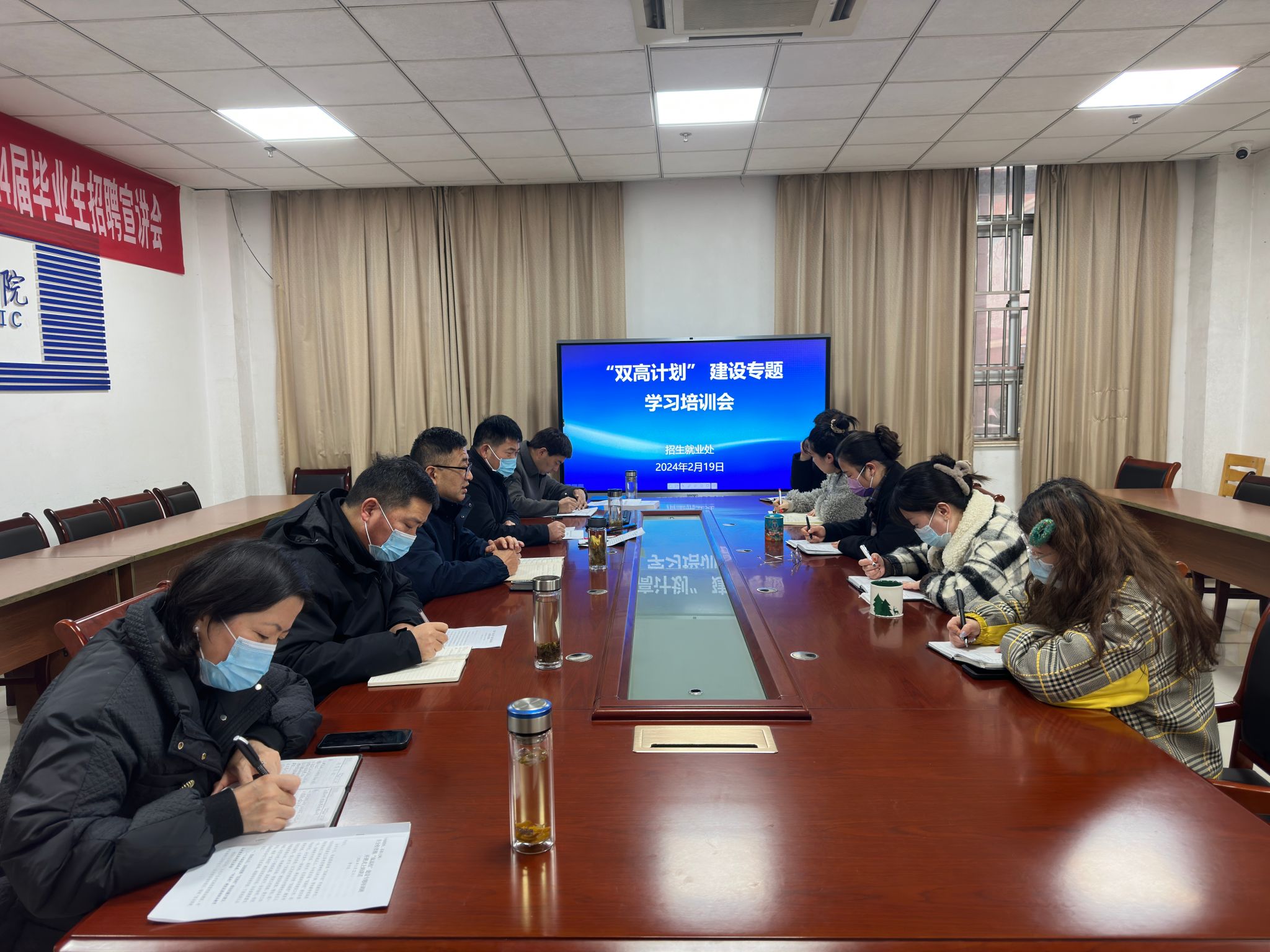 2月19日,招生就业处在综合楼118会议室组织召开部门“双高计划”建设专题学习培训会。校长助理、招生就业处处长穆松出席并主持会议,招生就业处全体成员参加会议。