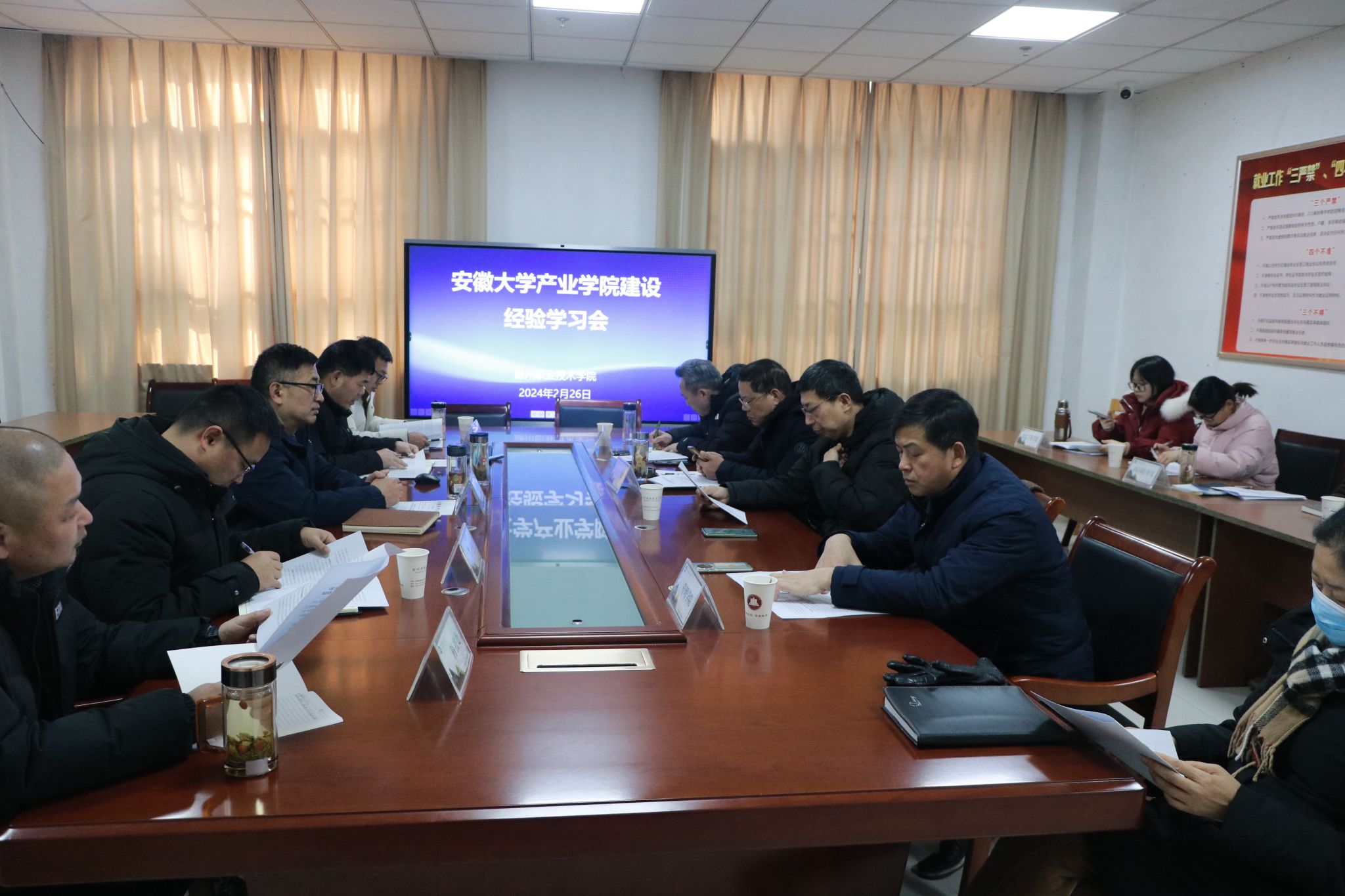 2月26日下午,学校在综合楼118会议室召开安徽大学产业学院建设经验学习会。校长助理、招生就业处处长、安徽滁州职业教育集团秘书长穆松出席会议,教务处、科技处、招生就业处有关负责同志及各二级学院党政负责同志参加了集中学习。