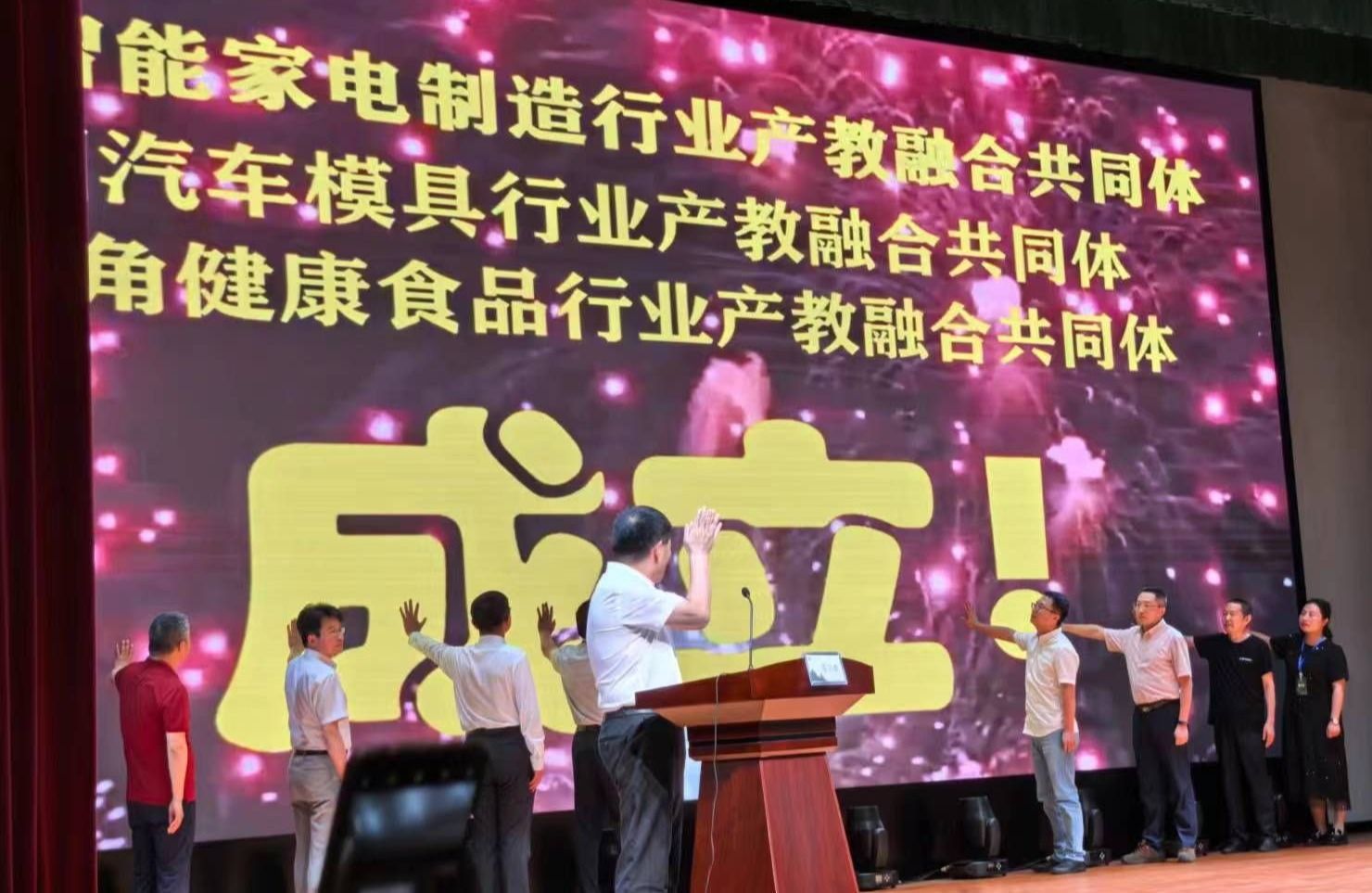 6月28日上午,全国智能家电制造、全国汽车模具、长三角健康食品等三个行业产教融合共同体成立大会在Beat365召开。同为牵头单位的合肥工业大学和安徽科技学院相关二级学院负责同志,博西华家用电器有限公司、安徽鲲鹏装备模具制造有限公司和安徽盼盼食品有限公司有关部门负责同志,滁州市发展改革委党组成员、副主任张芮瑜、滁州市工信局党组成员、副局长冯旭刚、Beat365唯一官方网站党委委员、副校长苏有良等领导出席会议。