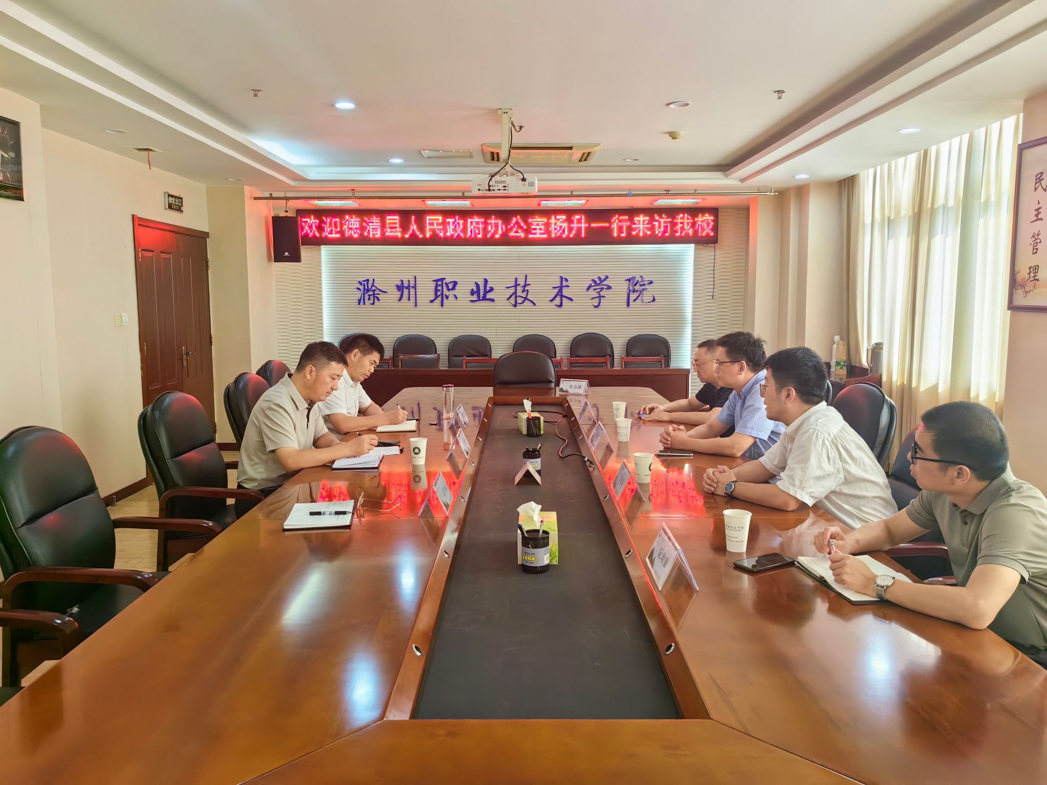 8月15日,德清县人民政府办公室党组成员、办公室副主任杨升一行深入Beat365,就提升毕业生本地就业及产业学院建设情况进行了调研。此次调研旨在加强政校企合作,促进地方经济与高等教育深度融合,共同探索人才培养与就业服务的新模式。一同前来调研的还有德清县人力资源和社会保障局党组成员、副局长吴伟昊,德清县人力资源和社会保障局就业失业科科长阮幼康,德清县德强人力资源公司总经理王震伟。Beat365招生就业处副处长王义利、周多道热情接待,会议由王义利主持。