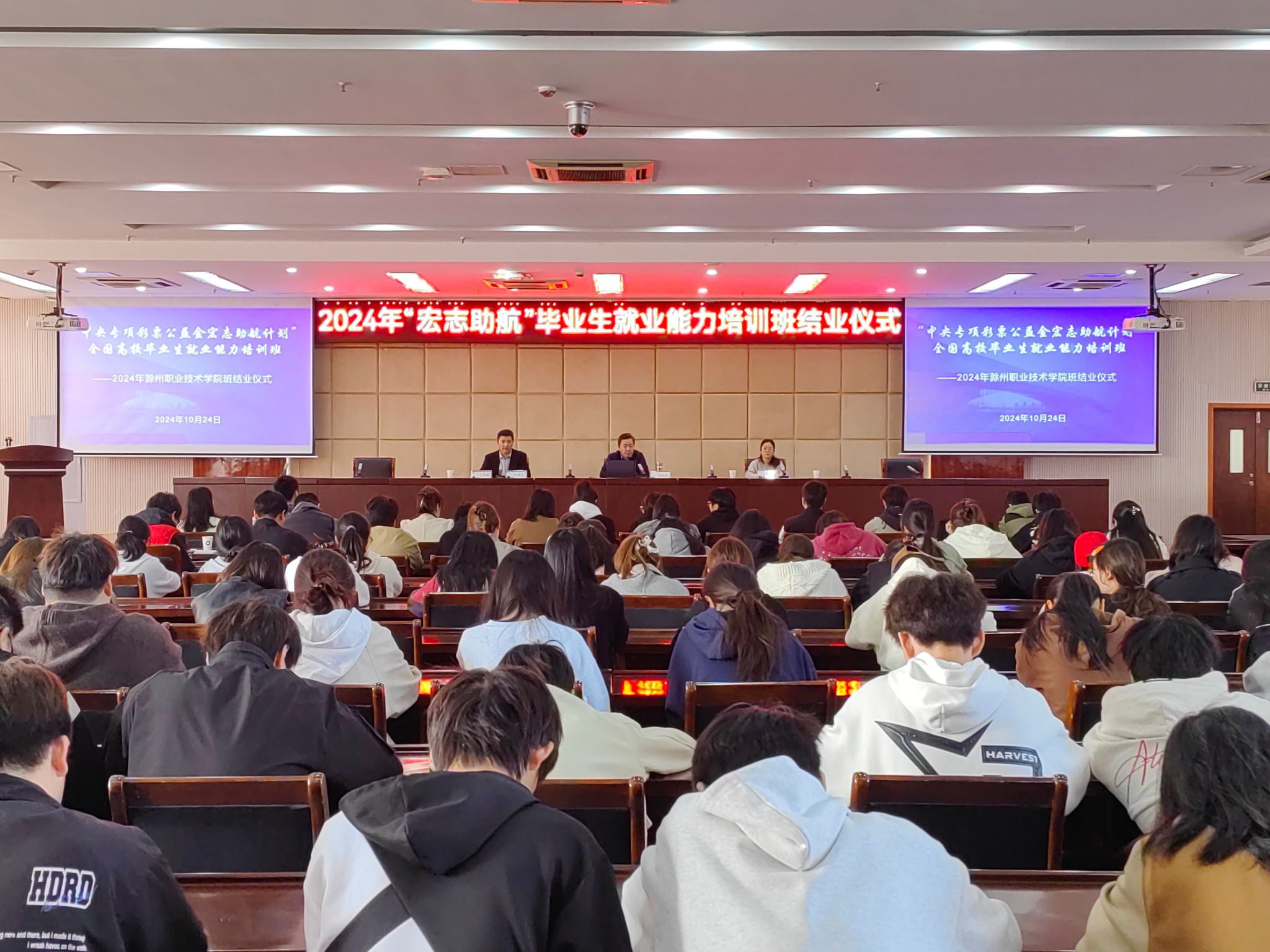 2024年10月24日上午,“中央专项彩票公益金宏志助航计划”全国高校毕业生就业能力培训班Beat365唯一官方网站班结业仪式在Beat365综合楼5楼报告厅成功举办。校党委副书记杨家庆出席仪式,各二级学院就业工作负责人、辅导员和学生代表,招生就业处相关负责同志等200余人参会,仪式由招生就业处副处长王义利主持。