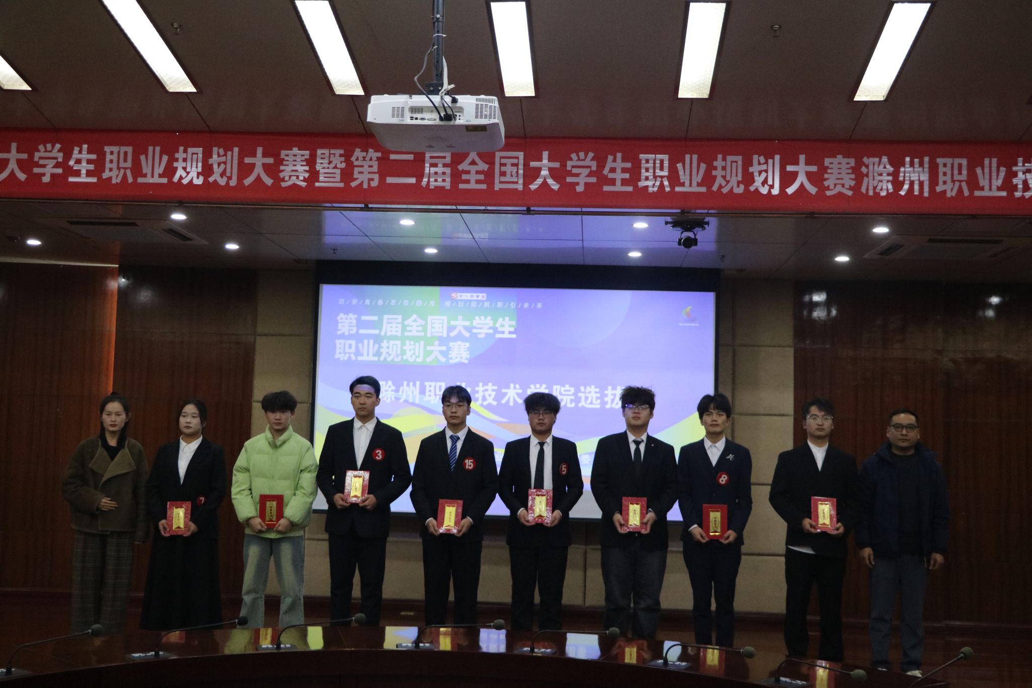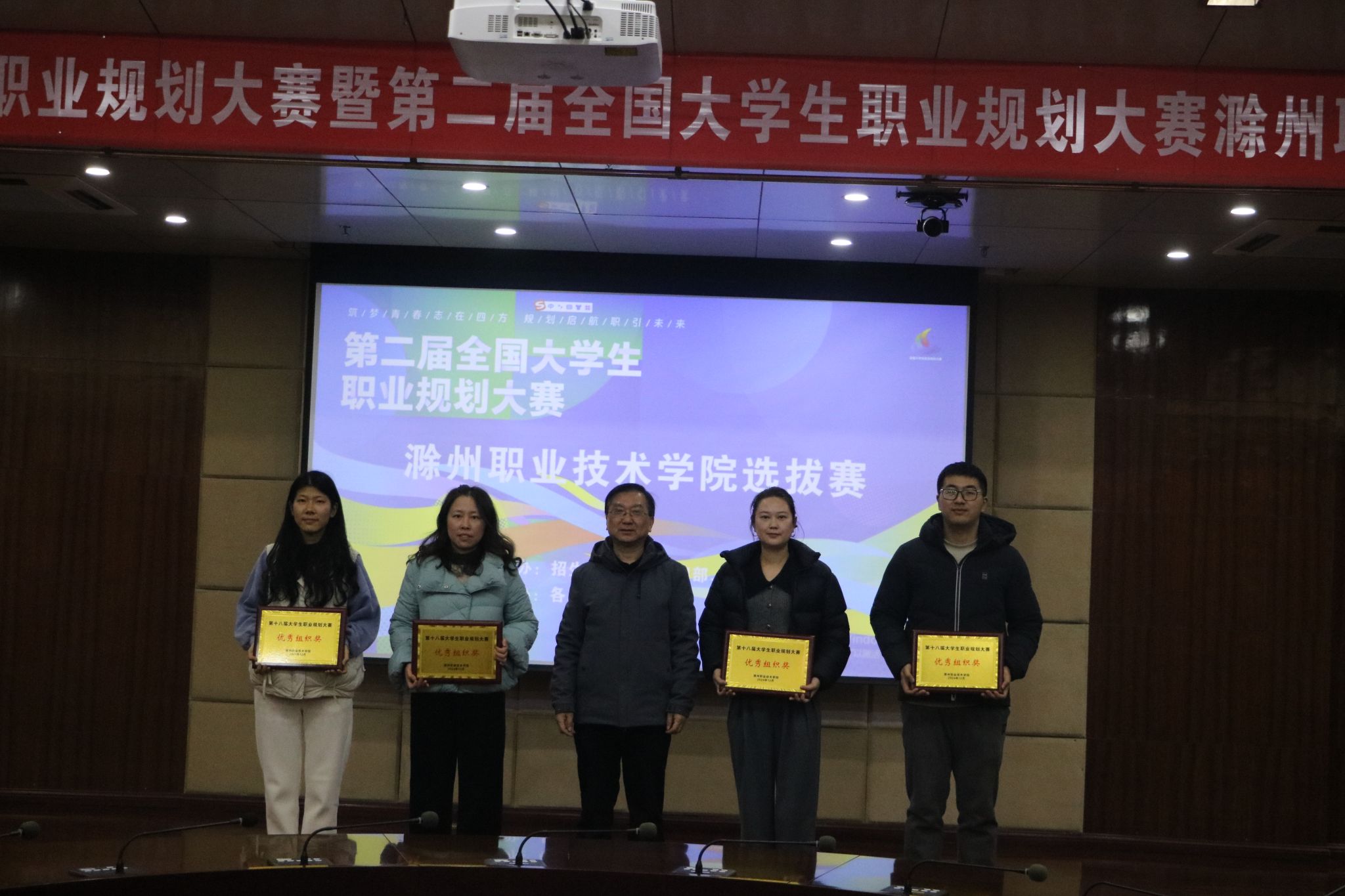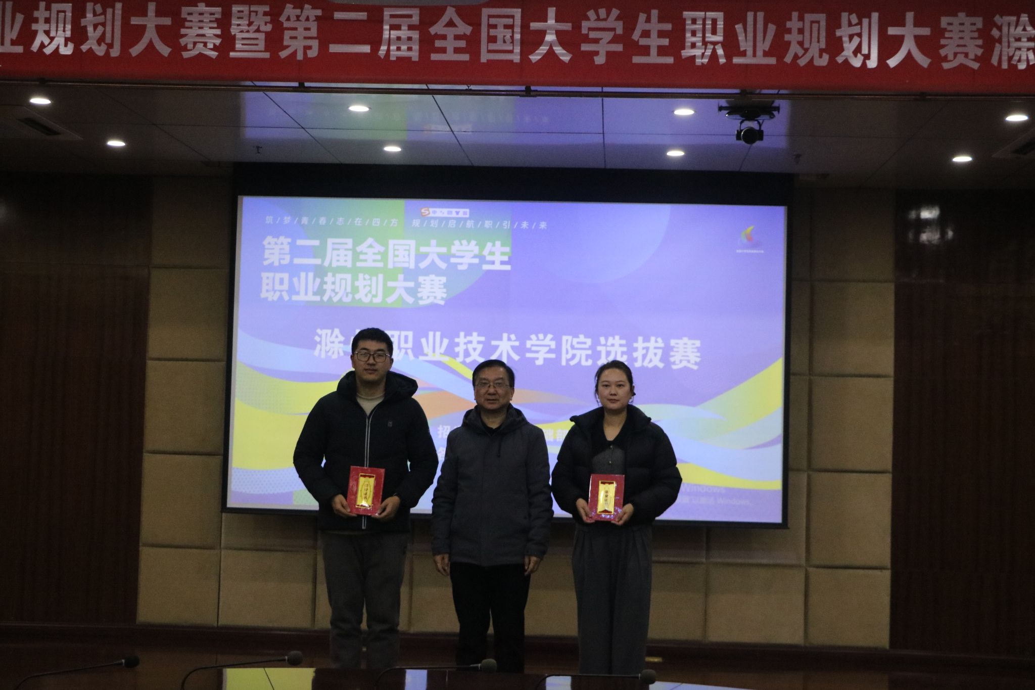 12月10日,Beat365成功举办第十八届安徽省大学生职业规划大赛暨第二届全国大学生职业规划大赛校级选拔赛。此次活动由招生就业处、基础部、团委联合主办,各二级学院协办。校党委委员、宣传部部长王冬莅临现场,并与招生就业处副处长王义利及评委嘉宾为获奖师生颁奖。