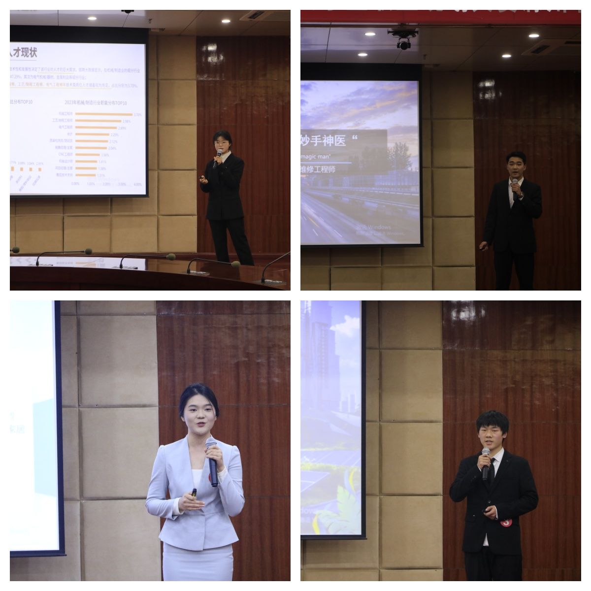 本次比赛历时2个月,共有4550名选手在线报名,经过初赛、复赛层层选拔,共有20位选手成功进入校决赛。比赛现场,选手们围绕“筑梦青春志在四方,规划启航职引未来”的大赛主题,着眼于所学专业,将光伏运维工程师、电商主播、新中式服装设计师、电商运营师、CAD工程设计师、食品检验员、物联网工程师等岗位设为目标职业,展现了自身风采与个性。最终,通过职业生涯报告书、PPT现场展示、简历制作等环节评比,商学院李阿莉、机械与汽车工程学院汪果,管理学院宋德超、电气工程学院宋浩浩分等4位同学分别获得成长赛道与就业赛道一等奖,食品与环境工程学院周圆圆等8位同学获得二等奖,传媒与设计学院曾钰等8位同学获得成长赛道三等奖。商学院、机械与汽车工程学院、管理学院及电气工程学院获“最佳组织奖”,汪亚运、臧铭、李云老师获得“优秀指导教师”称号。