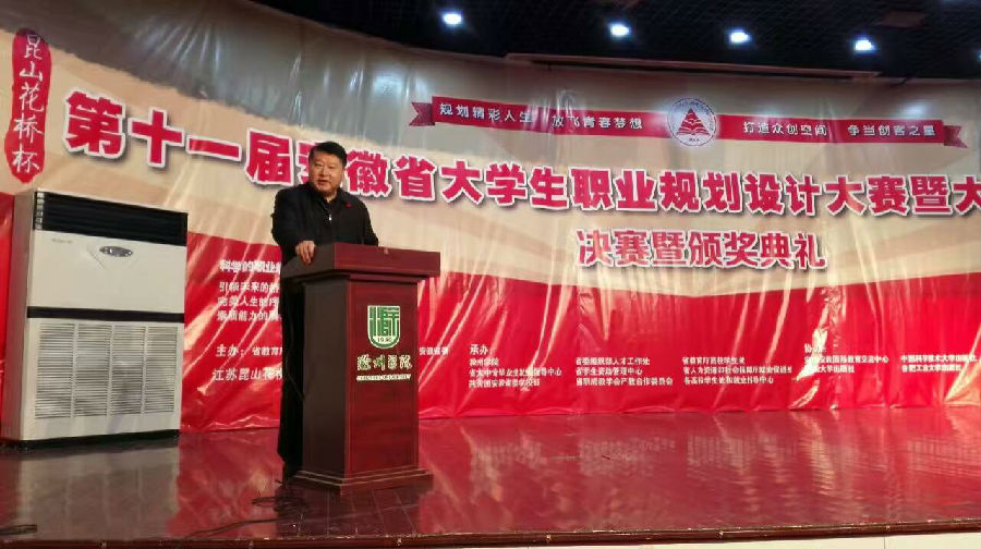 12月15-16日,由省教育厅、省人力资源和社会保障厅、共青团安徽省委联合主办的“昆山花桥杯”第十一届安徽省大学生职业规划设计大赛暨大学生创业大赛决赛暨颁奖典礼在滁州学院圆满落幕。学院3支代表队均以优异成绩夺得大赛金奖,学院也荣获“最佳组织奖”,四项“金奖”取得了参赛成绩的“大满贯”,是此项赛事自举办以来所有参赛高校中的唯一院校。省教育厅副厅长解平出席颁奖典礼并讲话。