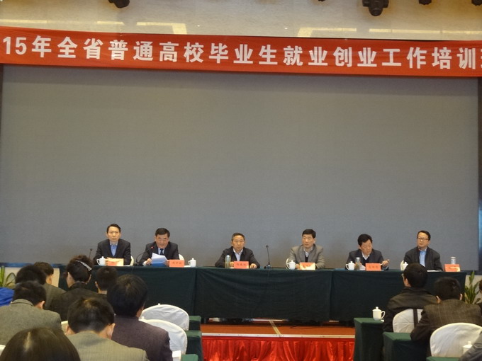 2015年4月15日,全省普通高校毕业生就业创业工作培训班在滁州市金鹏广场会议中心成功开办。来自全省各高校就业创业工作战线的260余人参加了本次培训。省教育工委委员、省教育厅副厅长杨德林、滁州市人大常委会副主任沈中林、Beat365唯一官方网站党委书记张勇等出席了开班式。开班式由省教育厅大中专就业指导中心鲍勇主任主持。