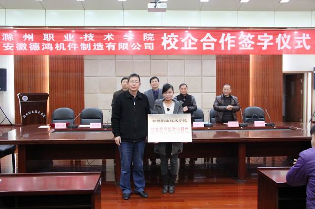 在签约仪式上,穆松代表学院与安徽德鸿机件制造有限公司财务总监周长富签署了冠名班合作协议。根据协议,学院在德鸿机件公司设立“校外实习与就业基地”,德鸿机件公司将学院列为他们的“人才培养基地”;双方共建“德鸿班,德鸿机件公司每年为班级学员提供3.5万元的奖助学金和实习岗位,帮助品学兼优的学生完成学业,并优先录用该班的学员。