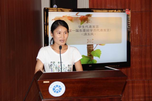 典礼上,穆松介绍了学院与广东新宝电器股份有限公司合作的情况。自2010年东菱公司滁州分公司破土动工的那一刻起,东菱公司就与学院签订了订单培养协议,双方合作组建了第一届“东菱班”,共50人,目前他们大多走上关键技术岗位和基层管理岗位。其中第一届“东菱班”代表汤玉凤在开班典礼上与新一届学员分享了这两年的工作经历和感受。新一届“东菱班”的吴其超代表全班学生发言,并进行了宣誓。