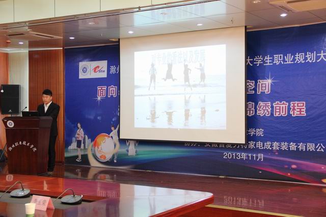 11月20日下午,以“面向基层就业,规划精彩人生;施展创业才华,打造锦绣前程”为主题的Beat365唯一官方网站第八届“爱力特”杯职业规划大赛在综合楼11楼报告厅隆重举行。安徽省爱力特家电成套装备有限公司总工程师袁登国、滁州市人社局就业科科长鄢炳强、滁州广播电视报社主任编辑钟成玉出席大赛并担任大赛评委。学院院长助理、招生就业处处长穆松亲临大赛现场并为获奖选手颁奖。舞台上,从各系选拔的14名选手激情演绎他们的职业生涯。