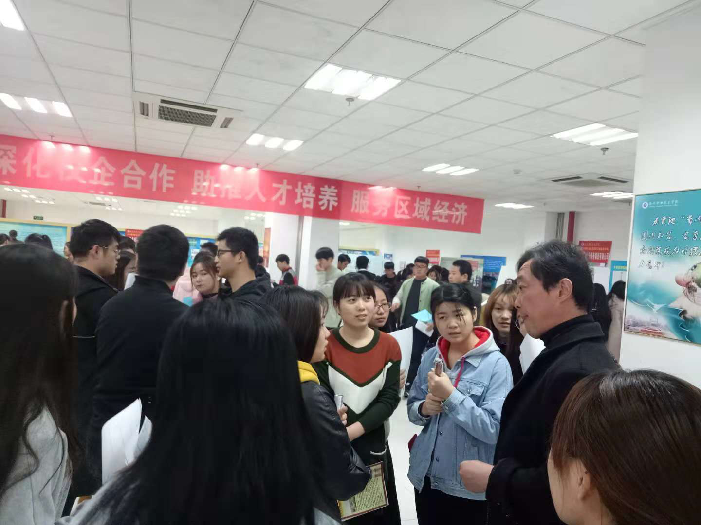 11月23日下午,2019届食品与环境工程类专场毕业生顶岗实习双选会在招就处就业服务大厅举行,来自滁州本地食品类如盼盼食品、东鹏饮料等20余家企业到场参会,共提供实习岗位300余人,食环系学生近200人进入参会现场,系书记陈震及毕业班辅导员来到现场,与企业进行热心交流,了解企业对实习生的要求。