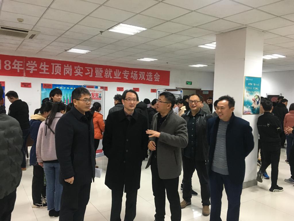 校党委副书记、校长许雪峰,校党委委员、校长助理、招生就业处处长穆松亲临现场,穆松向许雪峰详细介绍了前五场实习专场招聘会的落实情况及企业对实习生的需求情况。