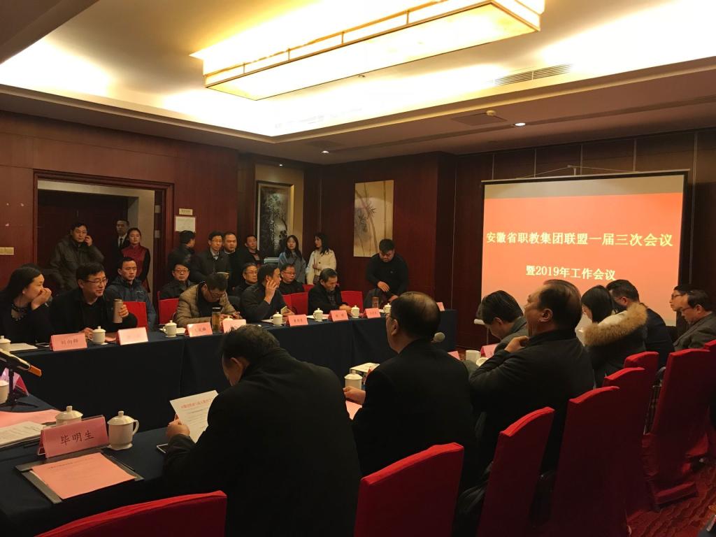 2019年1月5日,安徽省职教集团联盟一届三次会议暨2019年工作会议在合肥召开,省职业与成人教育学会会长李兴旺,省职教集团联盟轮值主席杨祖涛,Beat365党委委员、校长助理、安徽滁州职教集团秘书长、安徽省职教集团联盟第一届副秘书长穆松以及全省40多家职教集团的领导出席了会议。会议由职业与成人教育学会校企合作委员会秘书长崔肃主持。