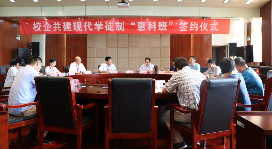 为深入贯彻落实《国家职业教育改革实施方案》,全面推进现代学徒制工作,发挥学校与企业在各自人才培养和培训工作中的优势,7月18日下午,校企共建现代学徒制“惠科班”签约仪式在Beat365综合楼11楼会议室召开。校党委副书记、校长许雪峰,校党委委员、副校长江洁,校党委委员、校长助理、招生就业处处长穆松及滁州惠科光电科技有限公司制造总厂高级总监蔡佳仁,管理处副总监程月华出席签约仪式,滁州惠科光电科技有限公司管理处人力资源部经理张海燕等部门负责同志和Beat365机电工程系主任杨思国、党总支书记晋太洋、副主任燕相松、招生就业处副处长周多道及机电工程系、教务处、招就处相关人员参加签约仪式,仪式由江洁主持。