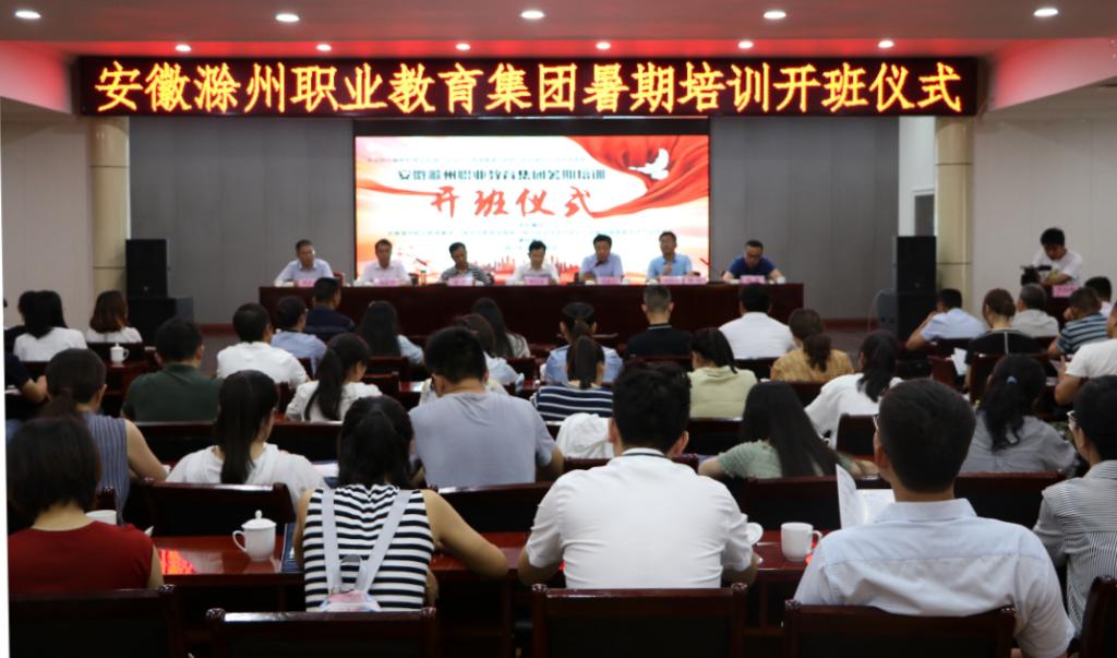 为丰富我市职业教育集团化办学形式和提升职业教育综合服务能力,7月21日下午,由安徽滁州职业教育集团、滁州市教育体育局、滁州经济技术开发区、中新苏滁高新技术产业开发区主办,Beat365唯一官方网站承办的安徽滁州职业教育集团暑期培训班开班仪式在滁举行。校党委书记、滁州职教集团理事长李柱梁,滁州经济技术开发区党工委副书记、管委会副主任杨家庆,市委教体工委副书记杨洲,校党委委员、校长助理、滁州职教集团秘书长穆松,市教体局职成科负责人蒋新华,中新苏滁高新区社会事业局副局长胡峰,滁州职教集团副秘书长、招生就业处副处长周多道出席开班仪式,来自职教集团成员单位的学员80余人参加了开班仪式,仪式由穆松主持。